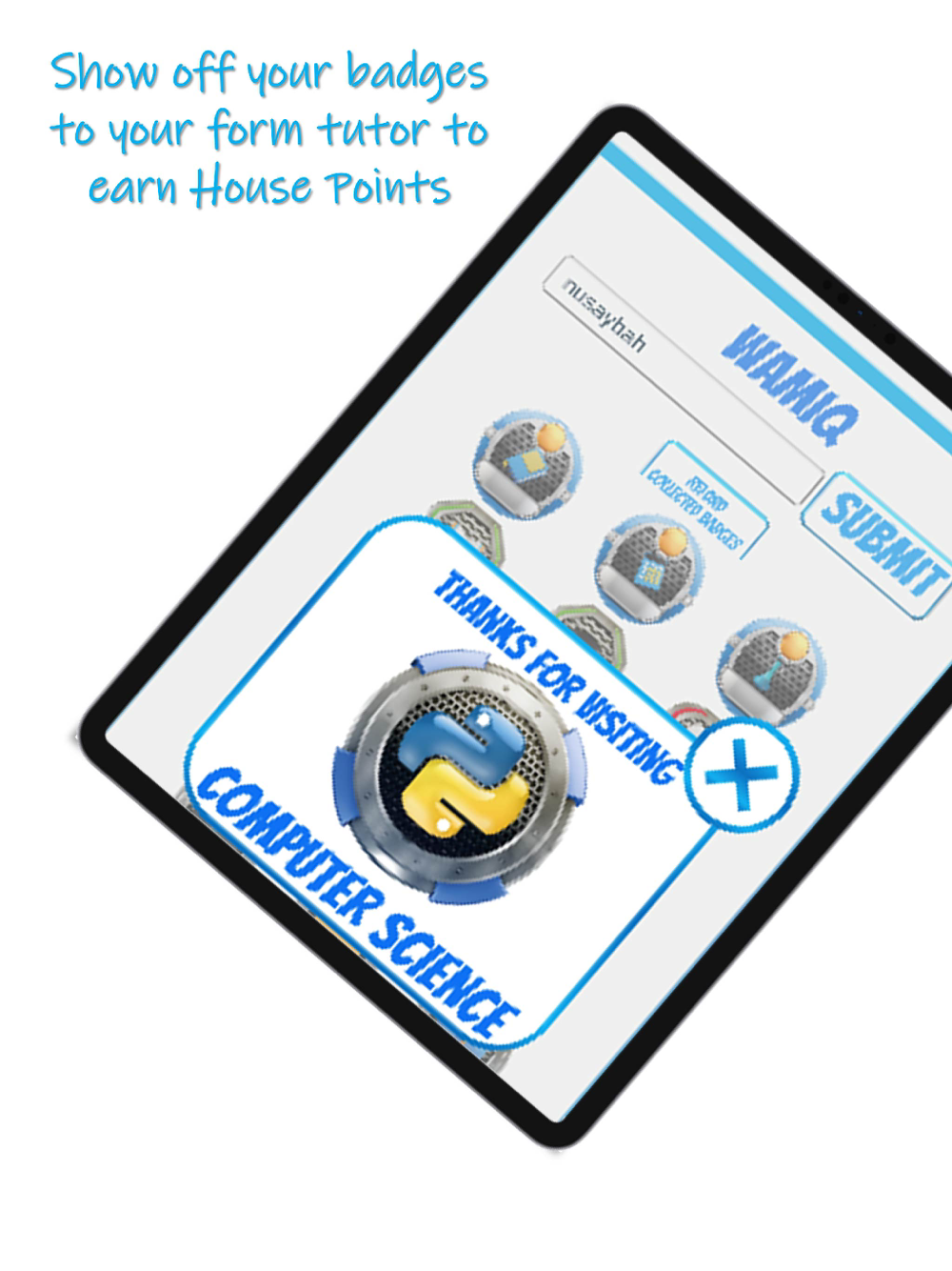 Once you enter your name into the app, as you go around visiting subjects, ask one of the teachers for the ExploreWSO subject code. Enter this code into the box at the top of the screen to unlock the subject's badge.
