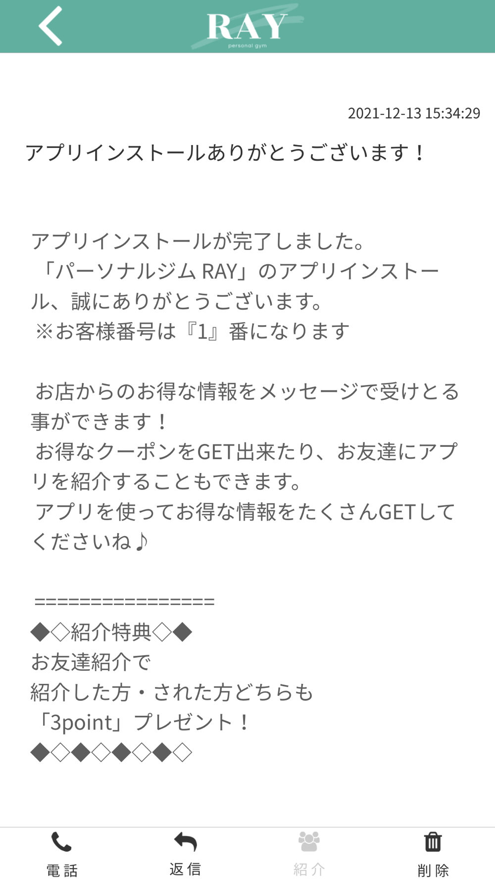 ジムレイのアプリをSNSを通じてお友達に紹介する事ができます。