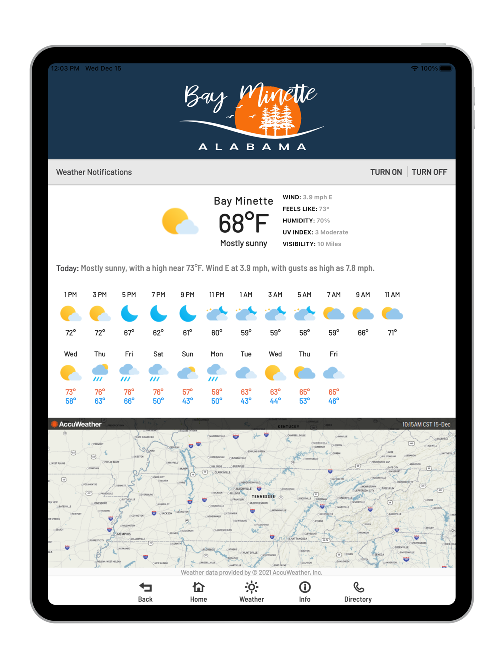Welcome to the beautiful City of Bay Minette! Whether a visitor or a resident, this app is designed to connect you with all our great city has to offer. Download this app to view public meetings, receive important alerts, download forms, and much more!