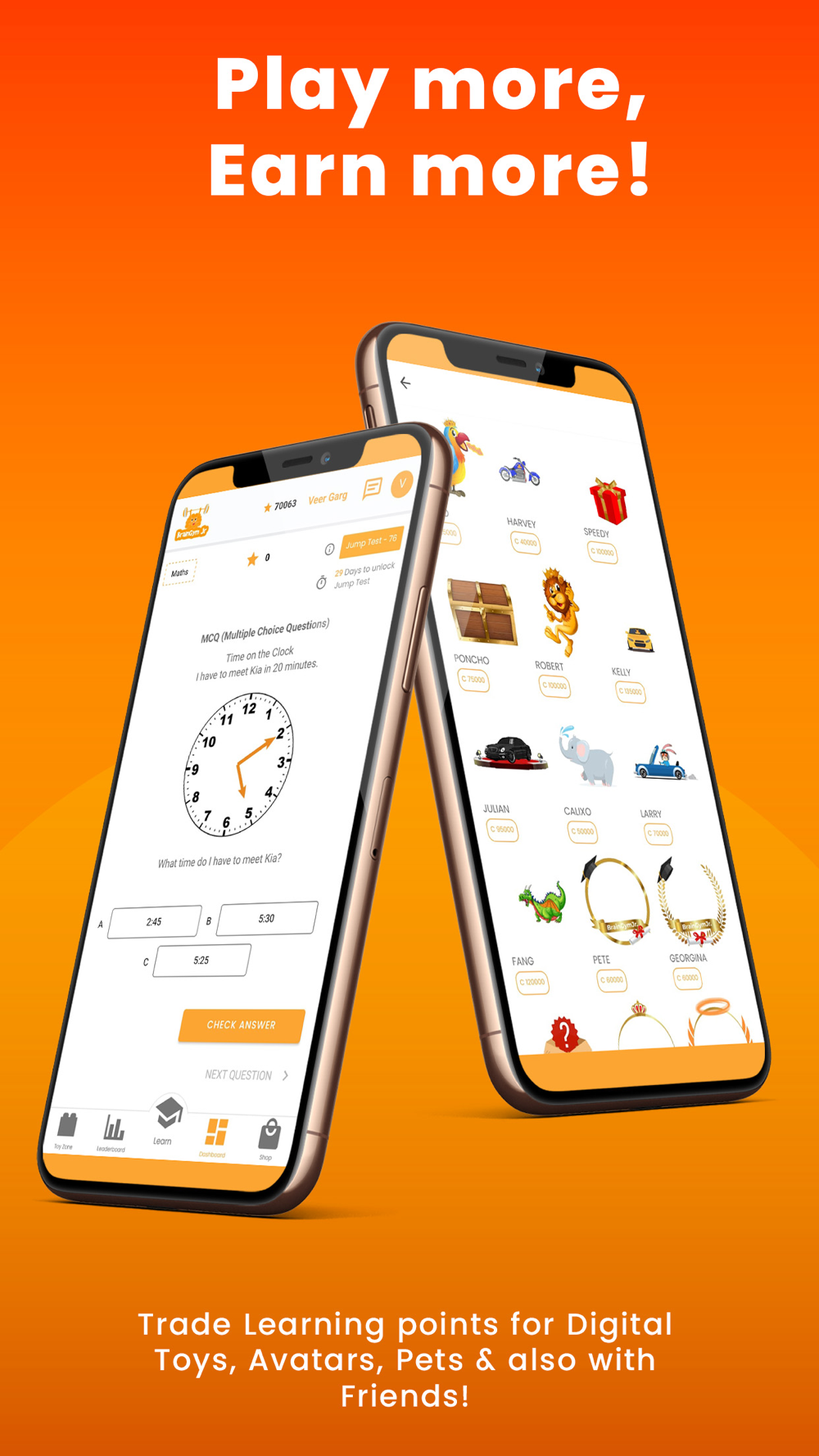 Children are recognized & rewarded for good performance through unlocking badges, winning certificates and appearing on leaderboards. Kids can also collect points and redeem them to take jump tests and race to the next level.