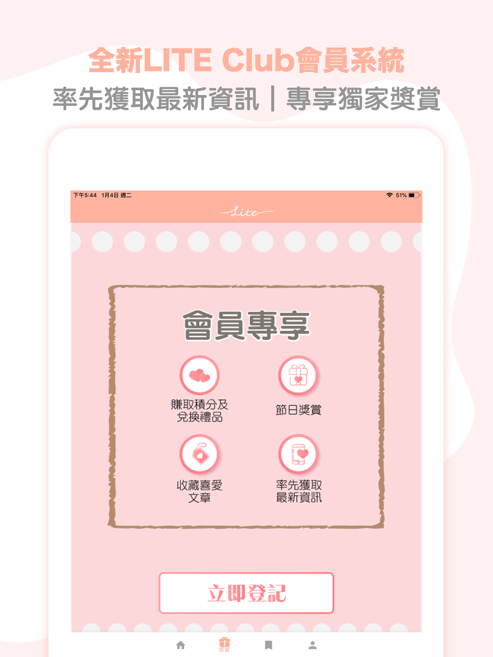 -全新Lite Club會員系統,成為Lite Club會員將專享獨家獎賞,賺取積分及兌換禮品及優惠。