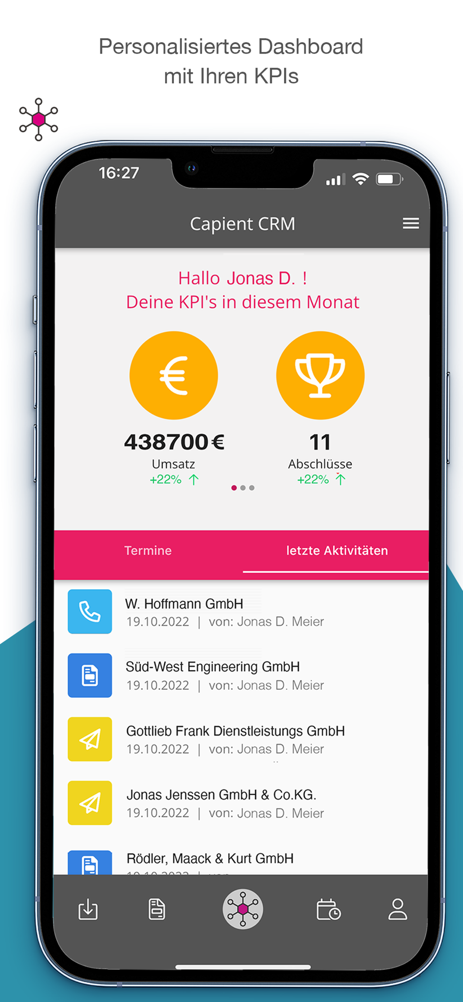 The capient CRM app for iPhone or iPad is your mobile business companion.