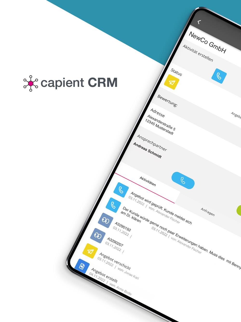 With the capient CRM app, you always have your current data with you.