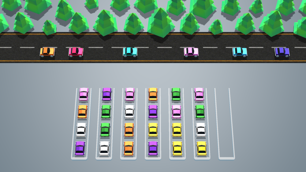 Sort car 3d in new puzzle game. The higher level you reach in puzzle, the harder it gets since there are more spaces to arrange colors.