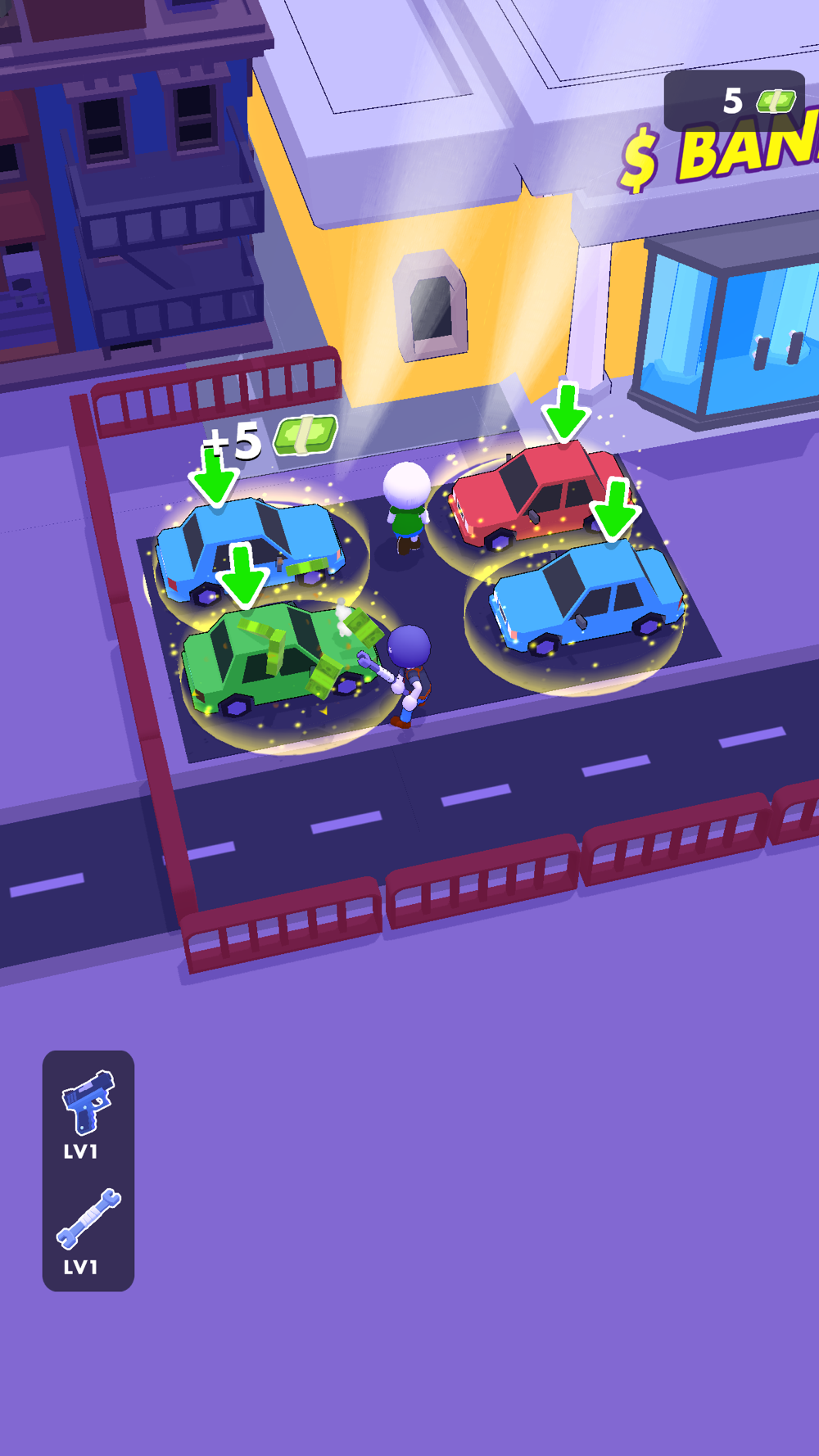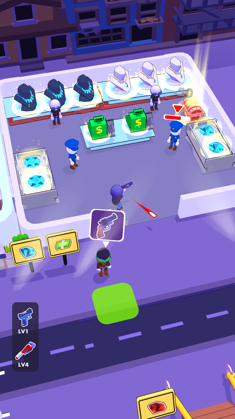 But be fast and don't get caught! As soon as you have enough, hop on the getaway car and skip town!