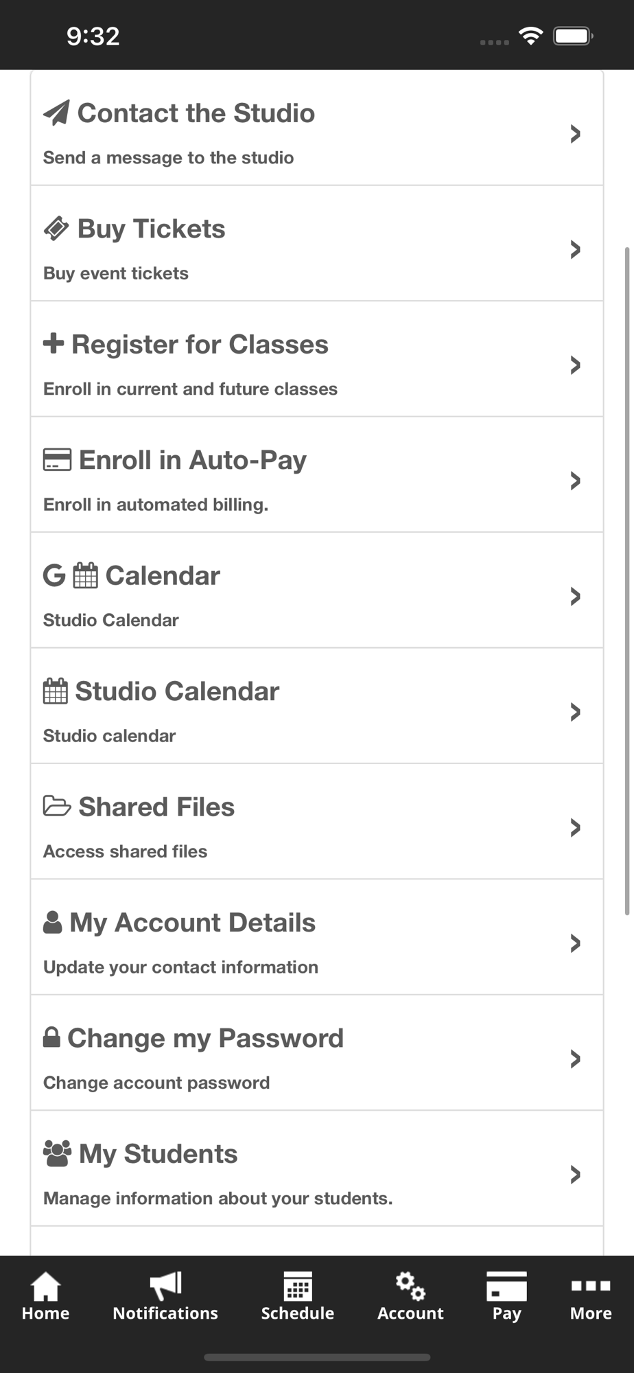 The Colorado Conservatory of Dance app allows you to manage your CCD account with ease, register for classes, view shared files, music, and more! You'll also receive important notifications about class changes, closings, registration openings, special announcements, and upcoming events.