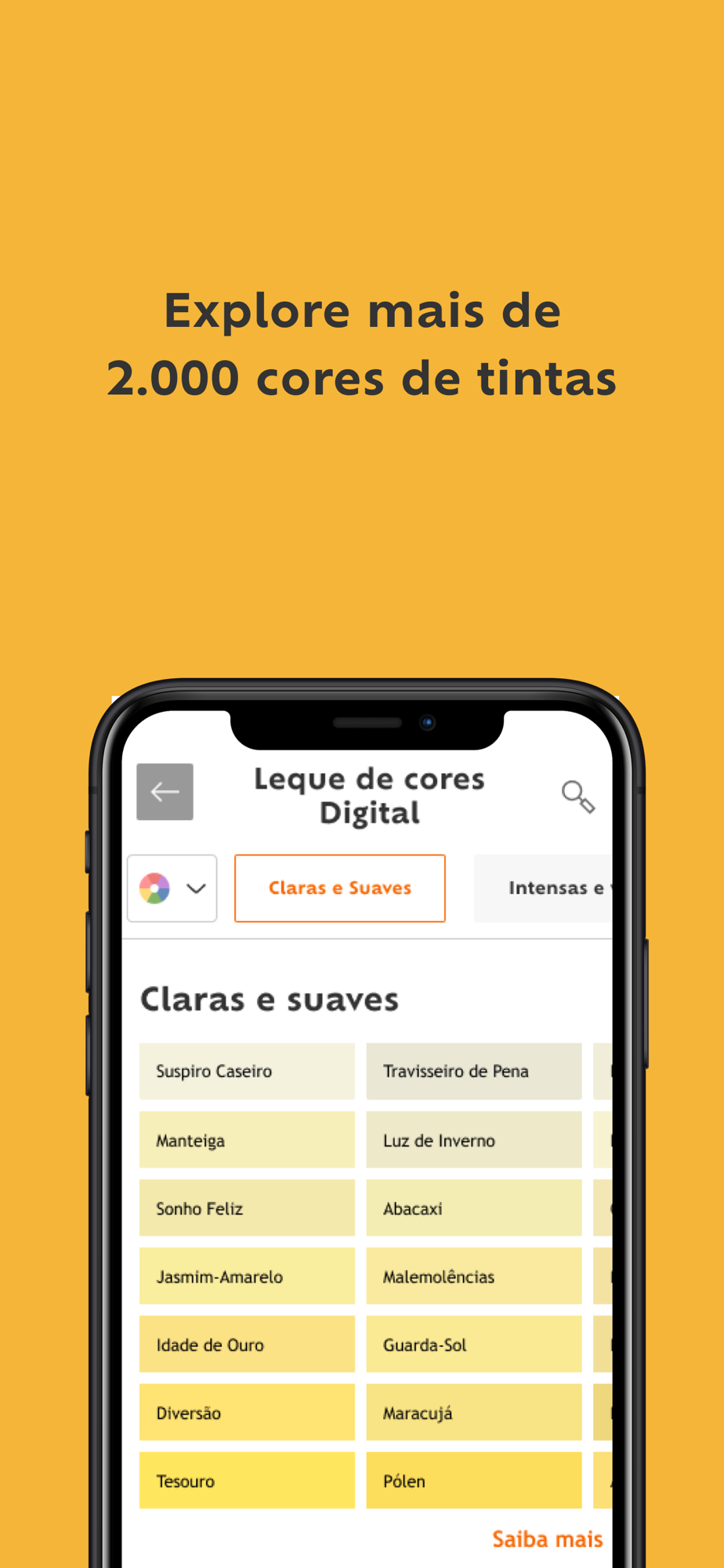 - Leque Digital das Tintas Suvinil: explore nosso catálogo de cores divididas pelos tons básicos, como laranjas, amarelos, vermelhos, azuis, verdes, cinzas e outros, ou navegue pelas sensações e cores da moda, abrindo novas possibilidade para pintura de parede. A Suvinil também facilita te inspirando com combinações de cores modeladas pelos nossos especialistas e arquitetos que já utilizaram o app Suvinil Teste Sua Cor.