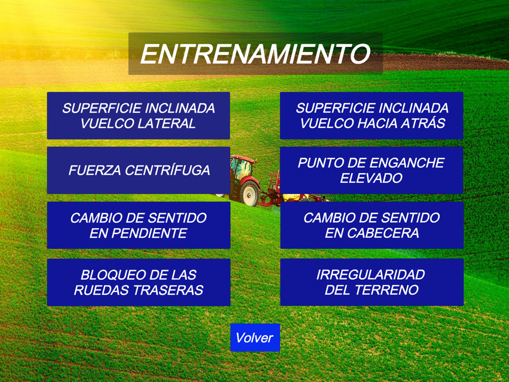 Esta aplicación es un simulador de conducción de tractor que permite formar a conductores en la conducción segura y en el uso adecuado de los dispositivos de seguridad (ROPS y cinturón de seguridad), concienciando acerca del riesgo de accidente por vuelco y reforzando las conductas seguras.