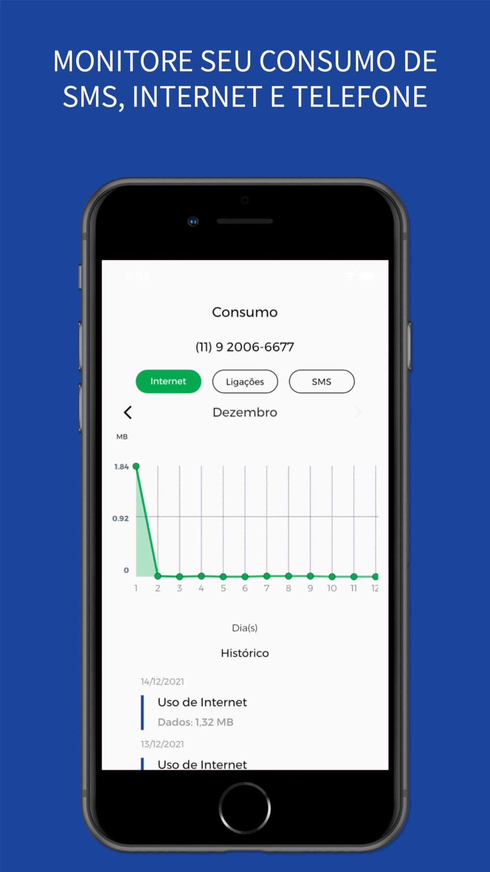 - Histórico das recargas realizadas online (aplicativo, site e por SMS).