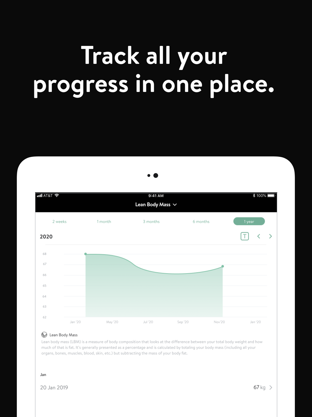- Connect to wearable devices like Apple Watch (synced to Health app), Fitbit and Withings to sync body stats instantly