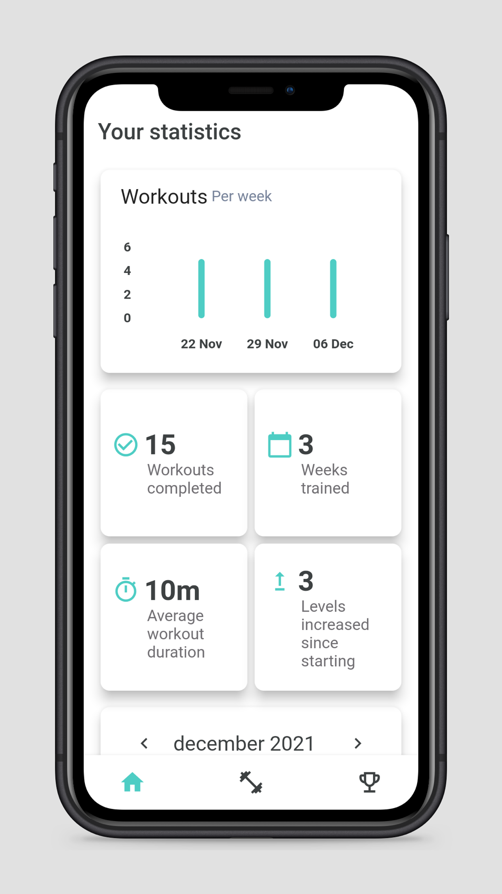 Train from the comfort of your own home or take the app with you to the gym. All you need is a towel or yoga mat. Bodyweight exercises are a good way to work on your strength, balance and stabilizing ability. In addition to increasing your muscle strength and muscle mass, your posture will also improve by working the stabilizing muscles.