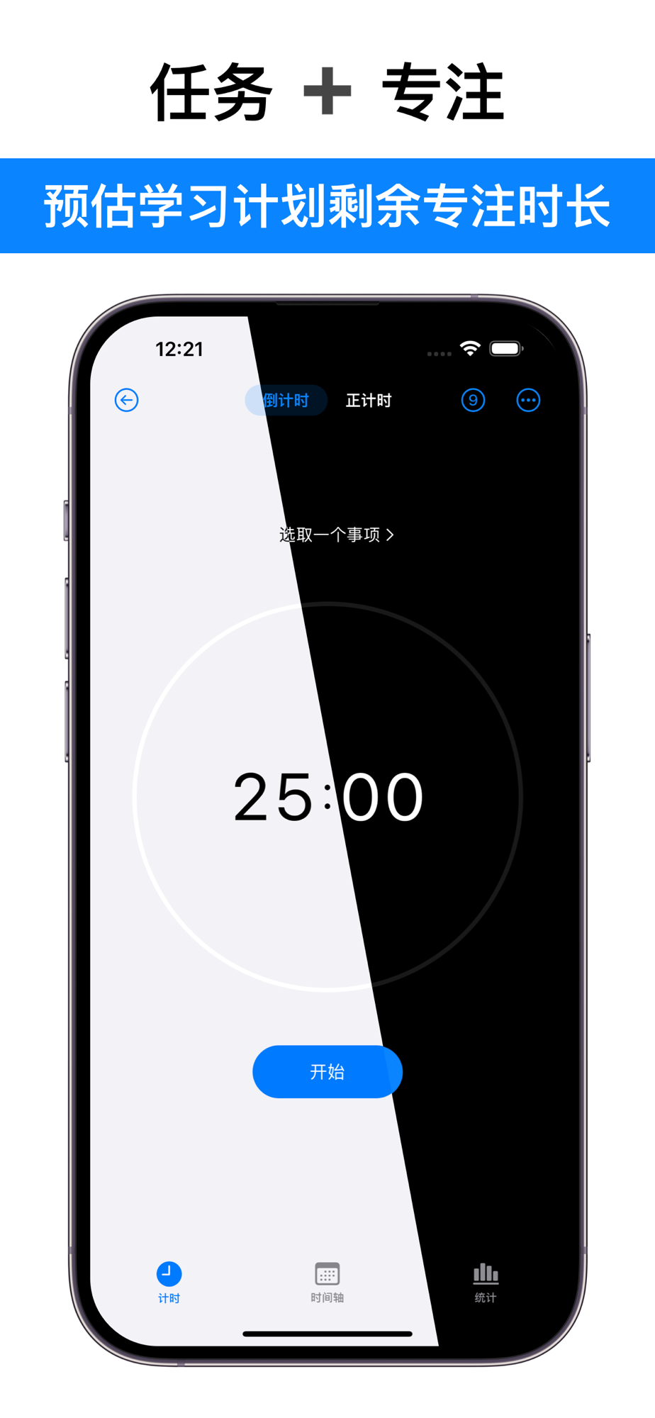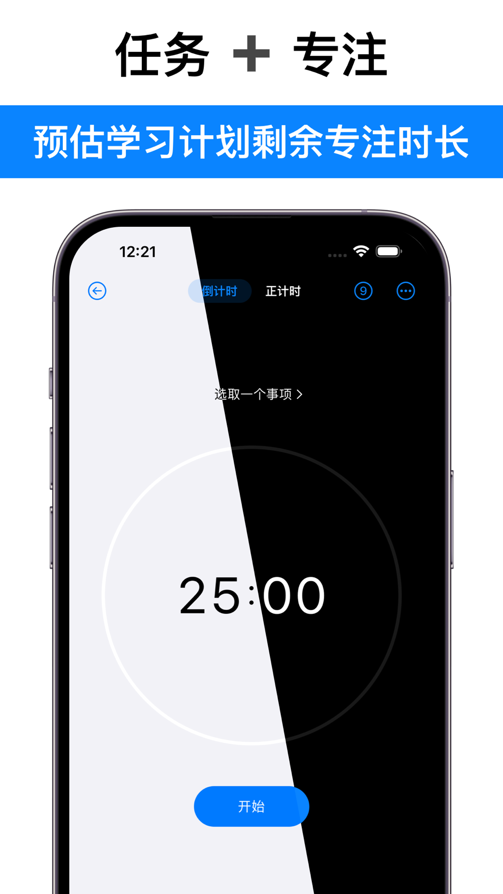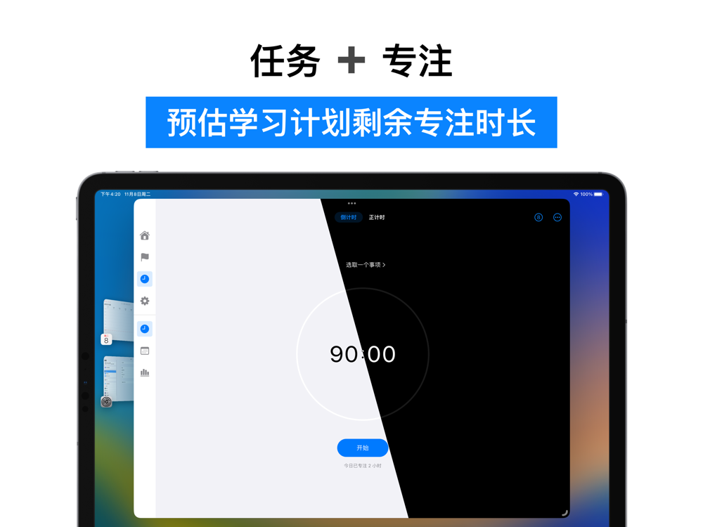 4. 支持专注计时关联学习任务,帮助预估学习任务剩余耗时。