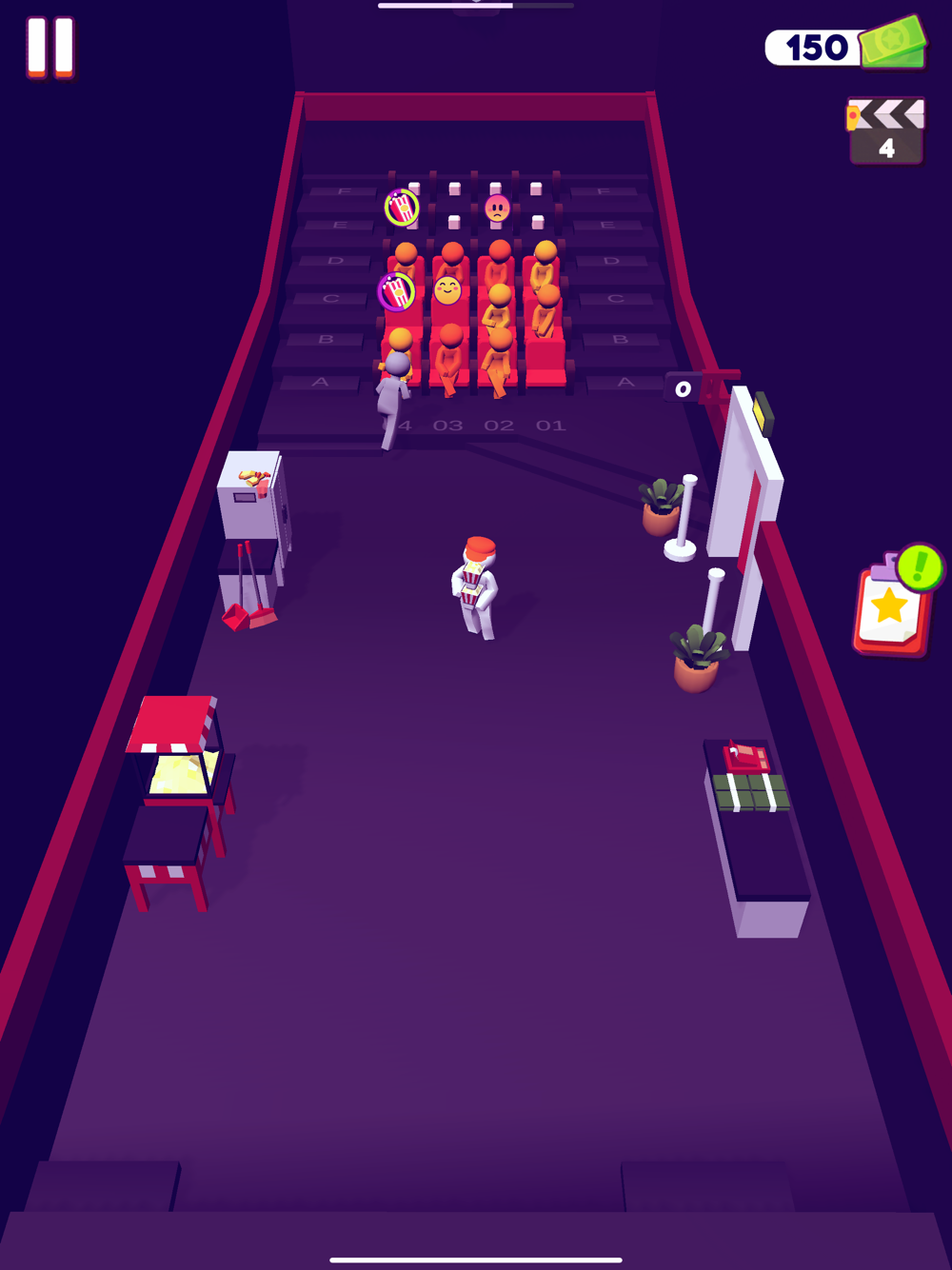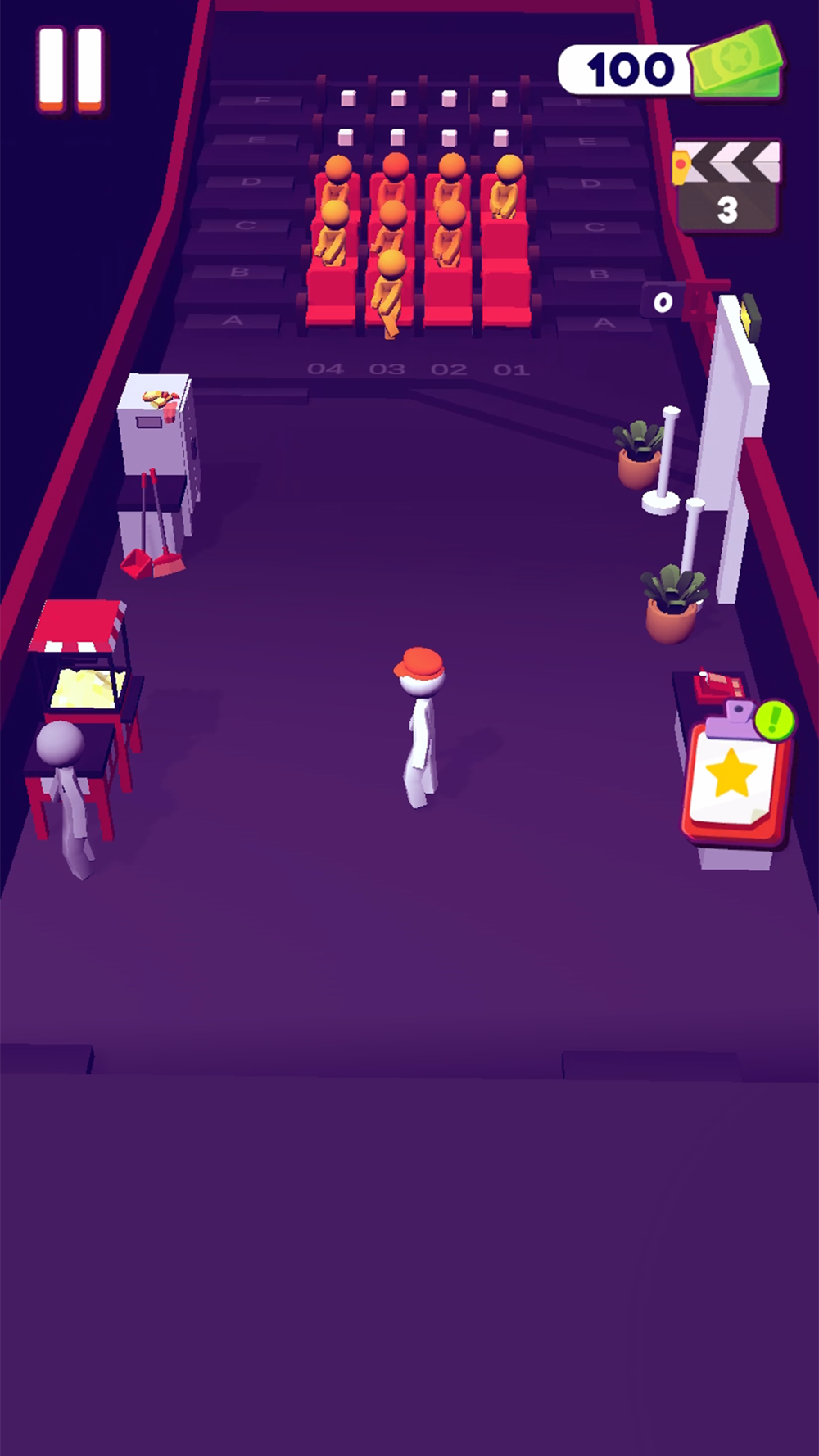 Usher your customers to their seats, fulfill their popcorn needs, and keep the space clean!