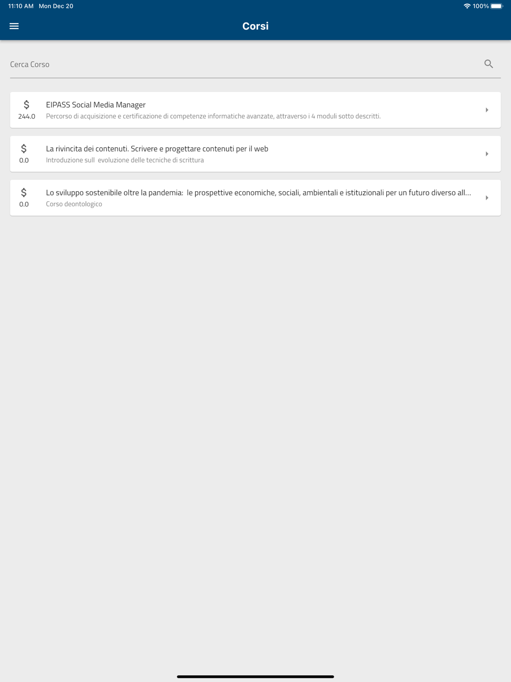 App per la visualizzazione dei corsi di formazione per giornalisti e la rilevazione delle presenze.