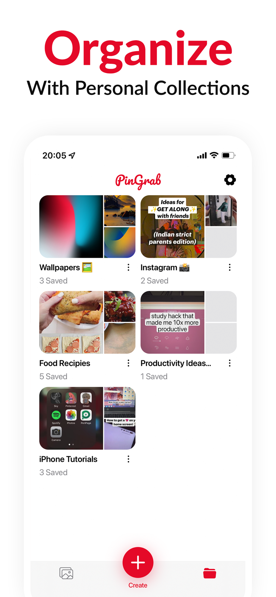 Organize your pins locally using custom in-app collections.