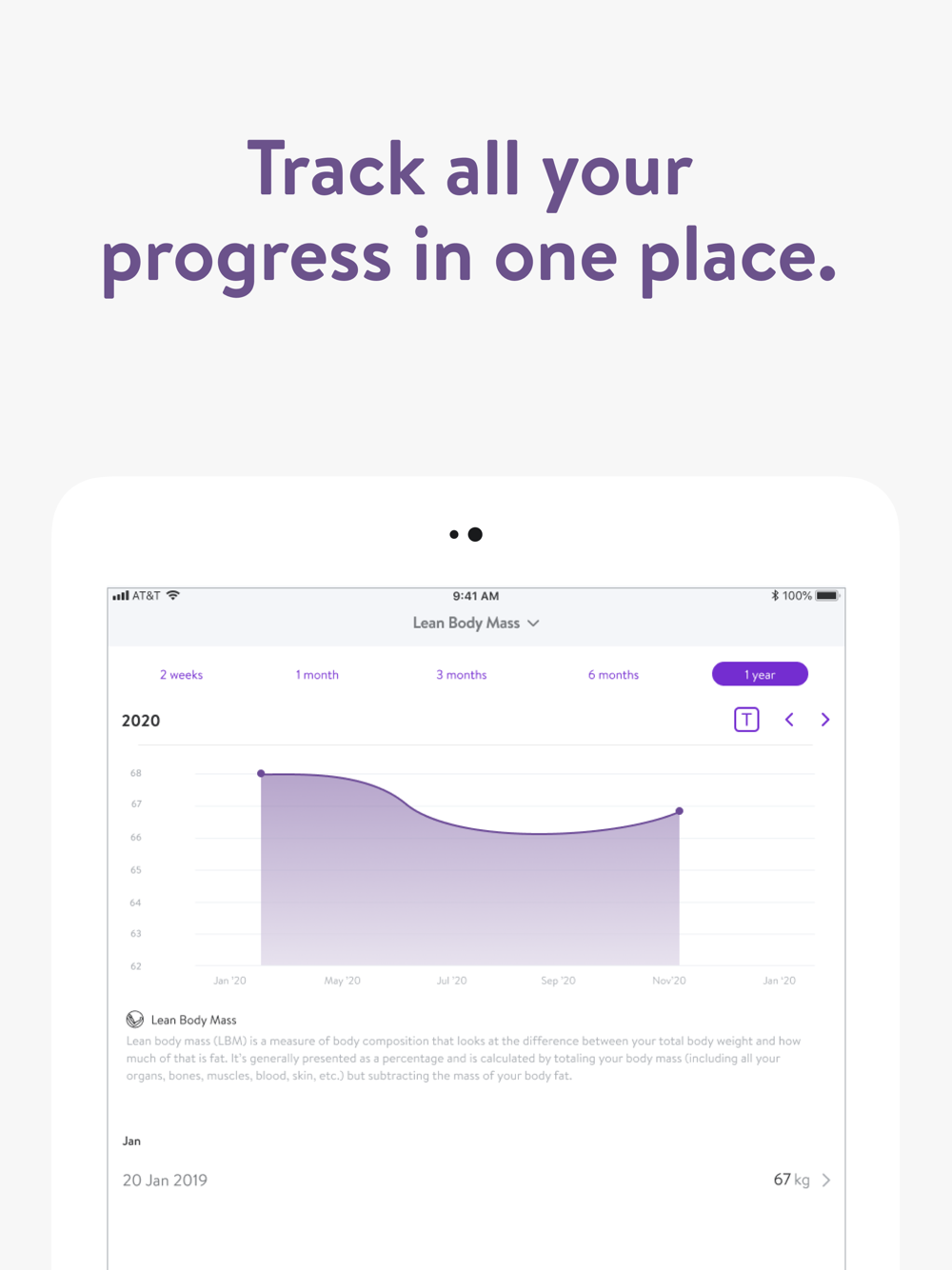 - Track body measurements and take progress photos