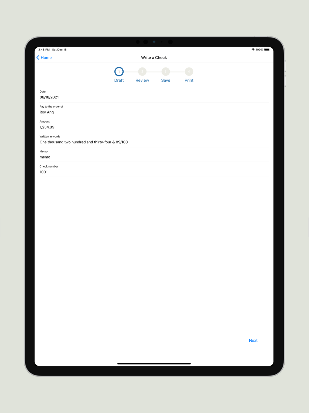 - AirPrint support, allow printing the check to the AirPrint-compatible printer