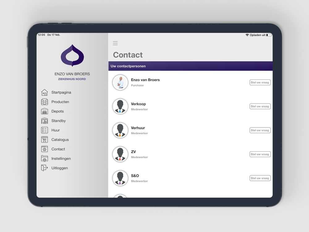 Met de Klantportaal app heeft een verpleegkundige, verzorgende of een inkoop medewerker altijd realtime inzicht in zijn of haar huur en/of eigendomsproducten. Deze app is speciaal ontwikkeld om ze onderweg of op locatie maximaal te ondersteunen.