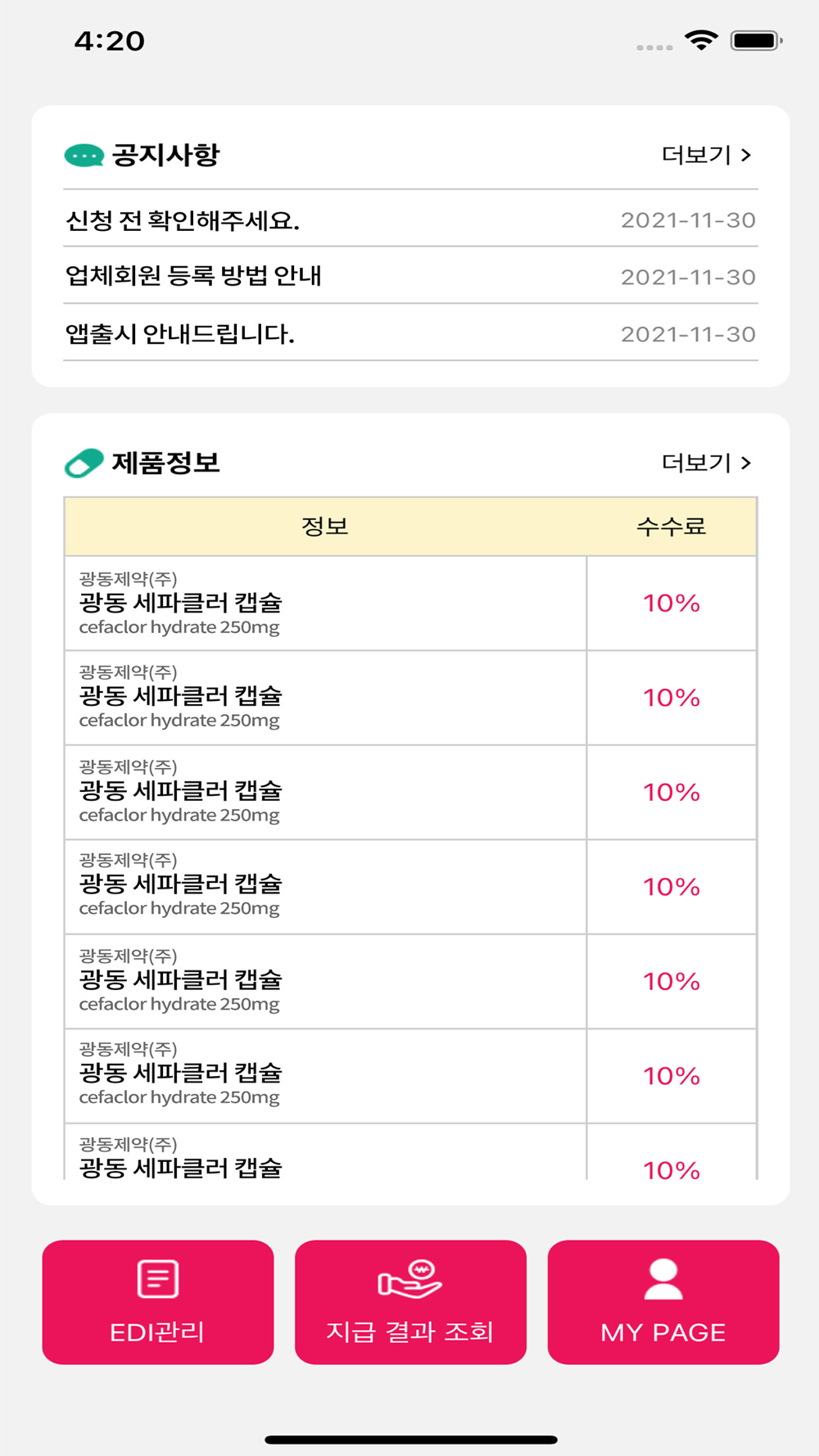 앱 목록에 있는 제약사 약을 판매하시고 수수료를 정산 받으세요