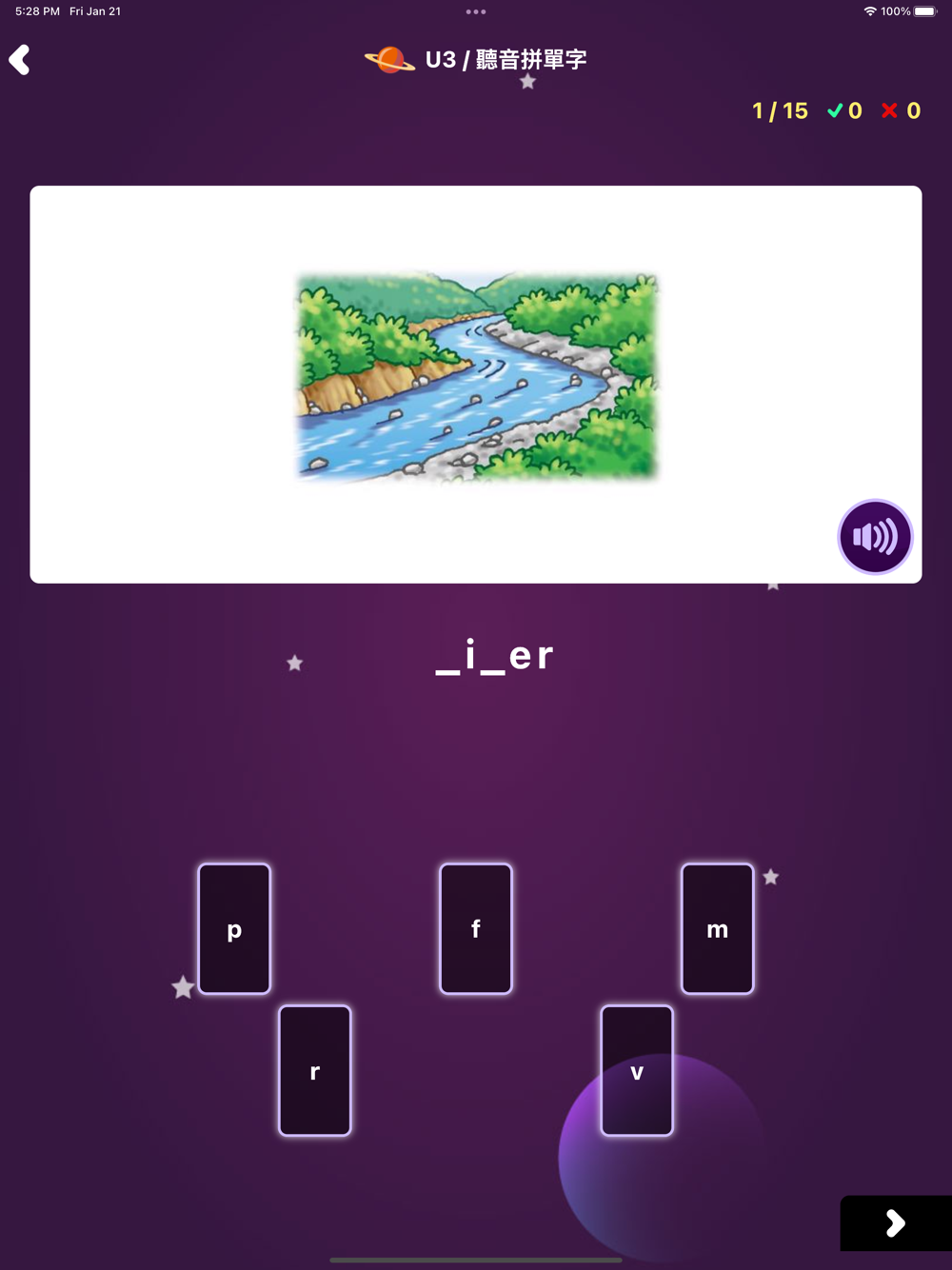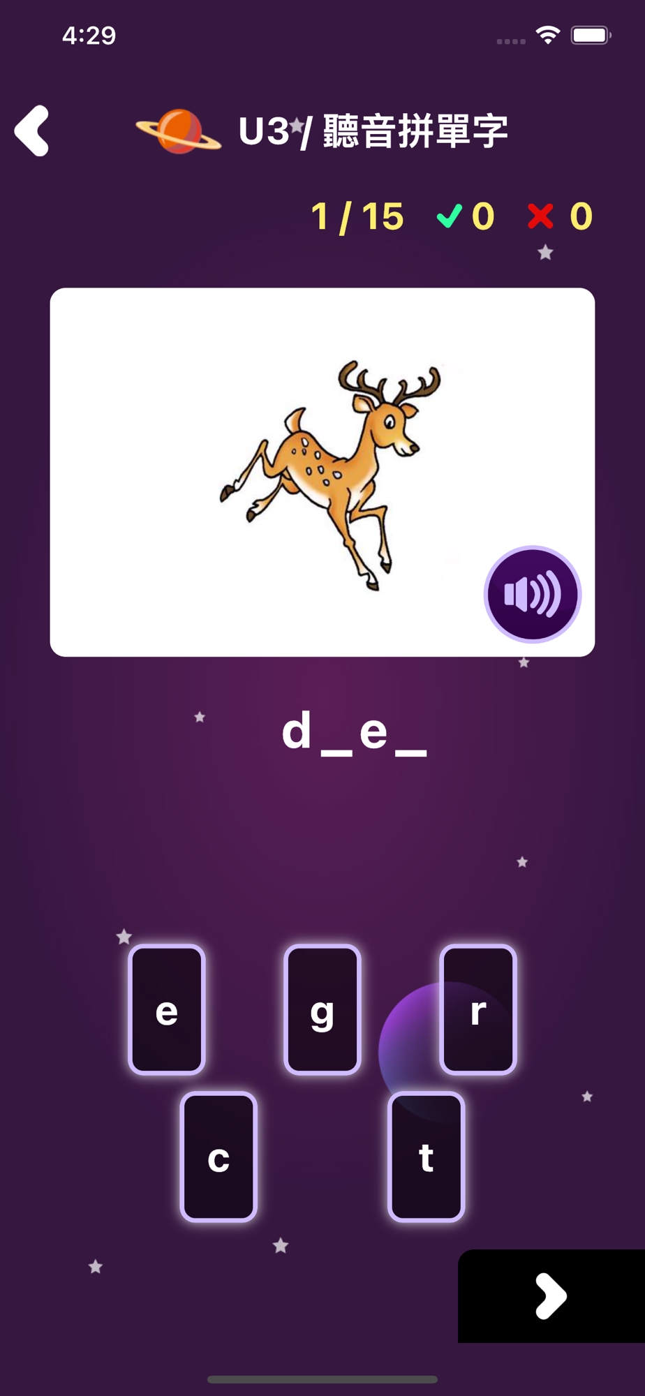 - 聽音拼單字:透過聽音看圖正確拼寫單字