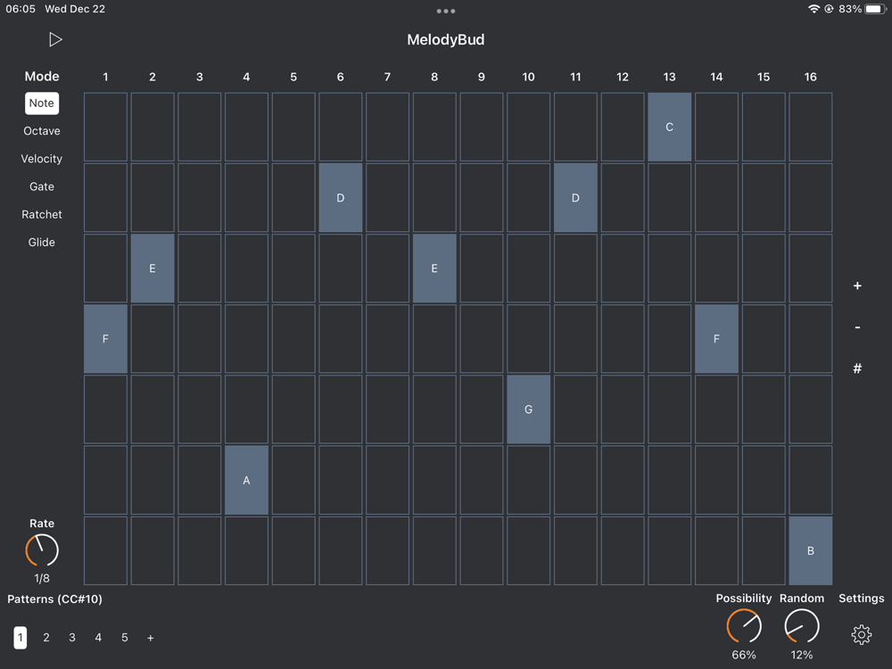 MelodyBud is an AUv3 MIDI sequencer with great generative sequencing capabilities. Instead of a traditional sequencer, you can randomise your notes, velocity, octave, and gate length of your steps, add ratchets and glide to make it more interesting!