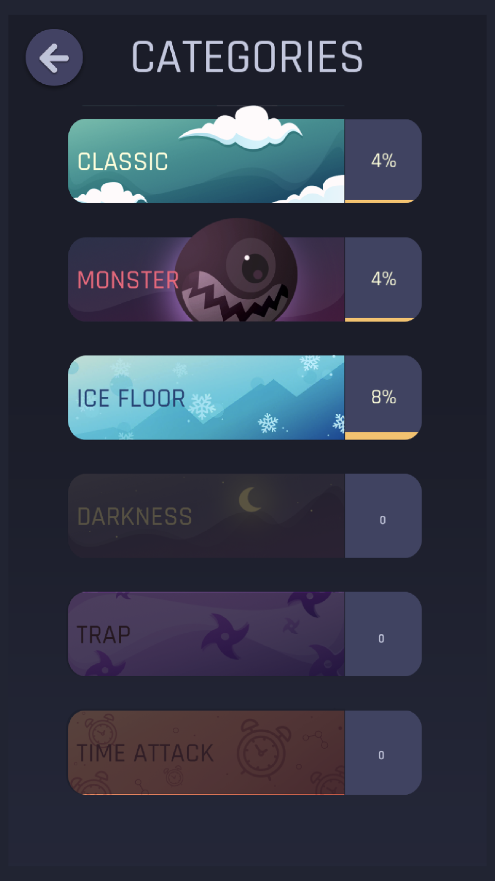 - 6 categories: Classic, Monster, Ice Floor, Darkness, Traps and Time Attack.