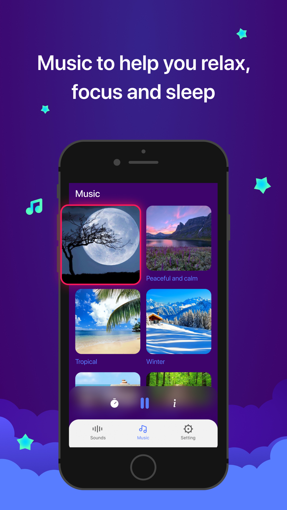 Play our carefully selected soothing sounds and relaxing music and you will sleep like a baby. Enjoy the high-quality sleep sounds and wake up refreshed. Schedule a sleep timer to automatically stop the music.