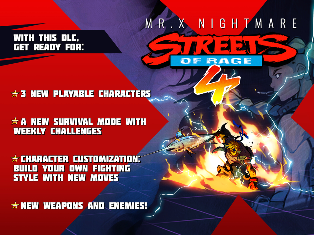After the events of Streets of Rage 4, our heroes wanted to prepare themselves for future threats. Axel, Blaze and their mates will start a very special deranged training with the help of Dr. Zan, who built an AI program from the remnants of Mister X’s brain that simulates every kind of danger they could be facing.
