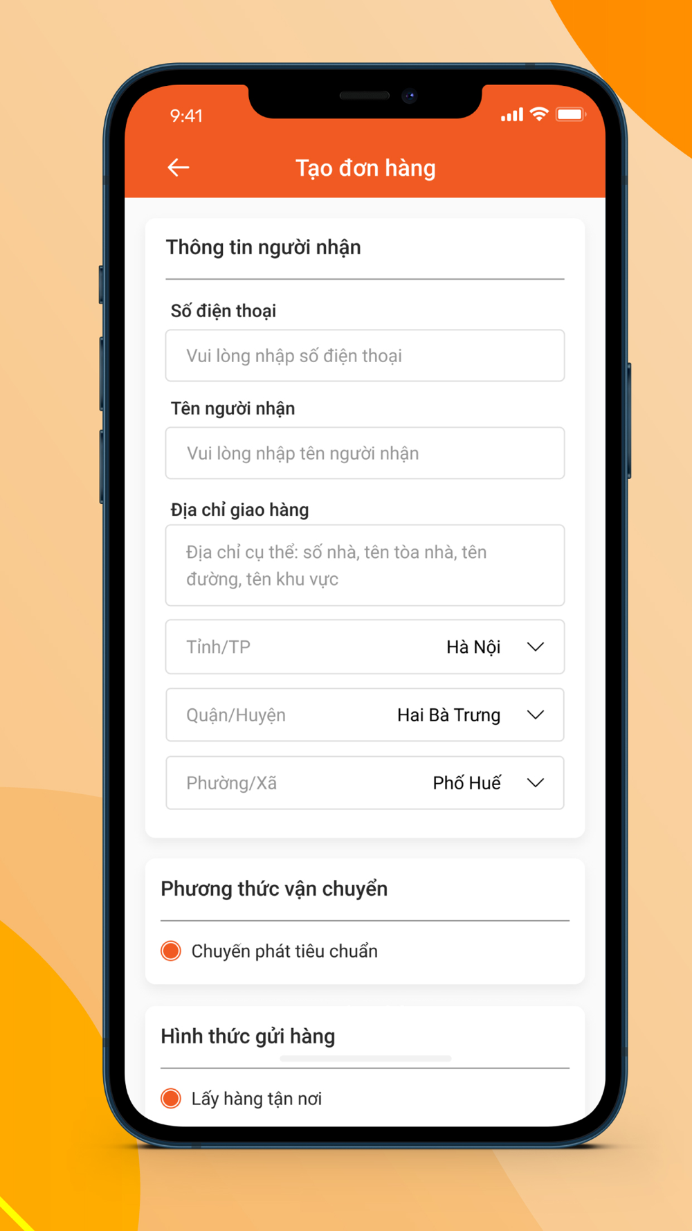 - Tạo đơn hàng mọi lúc mọi nơi trên app mobile
