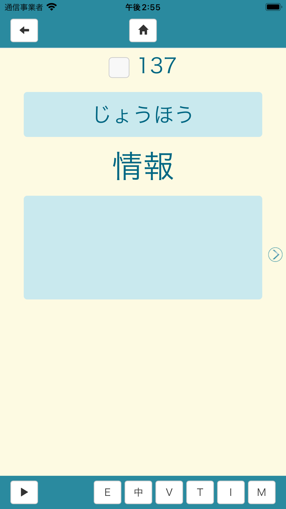 ・「音声自動再生 ON/OFF」…ONにすると、単語や文章を表示する時に自動で音声を再生します。