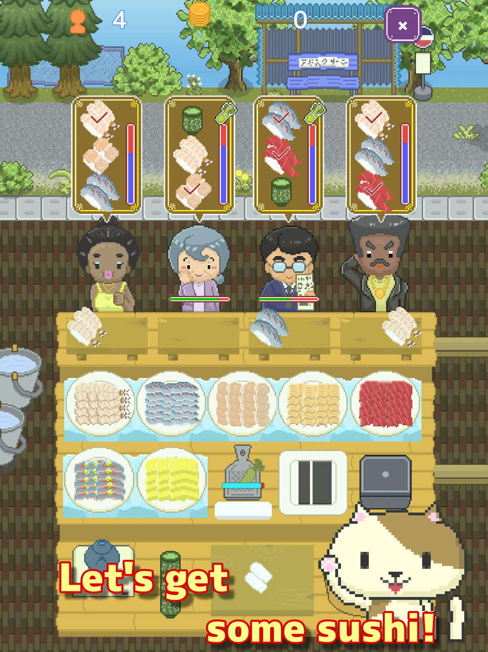 Try to guess what kind of sushi the special guests like and treat them.
