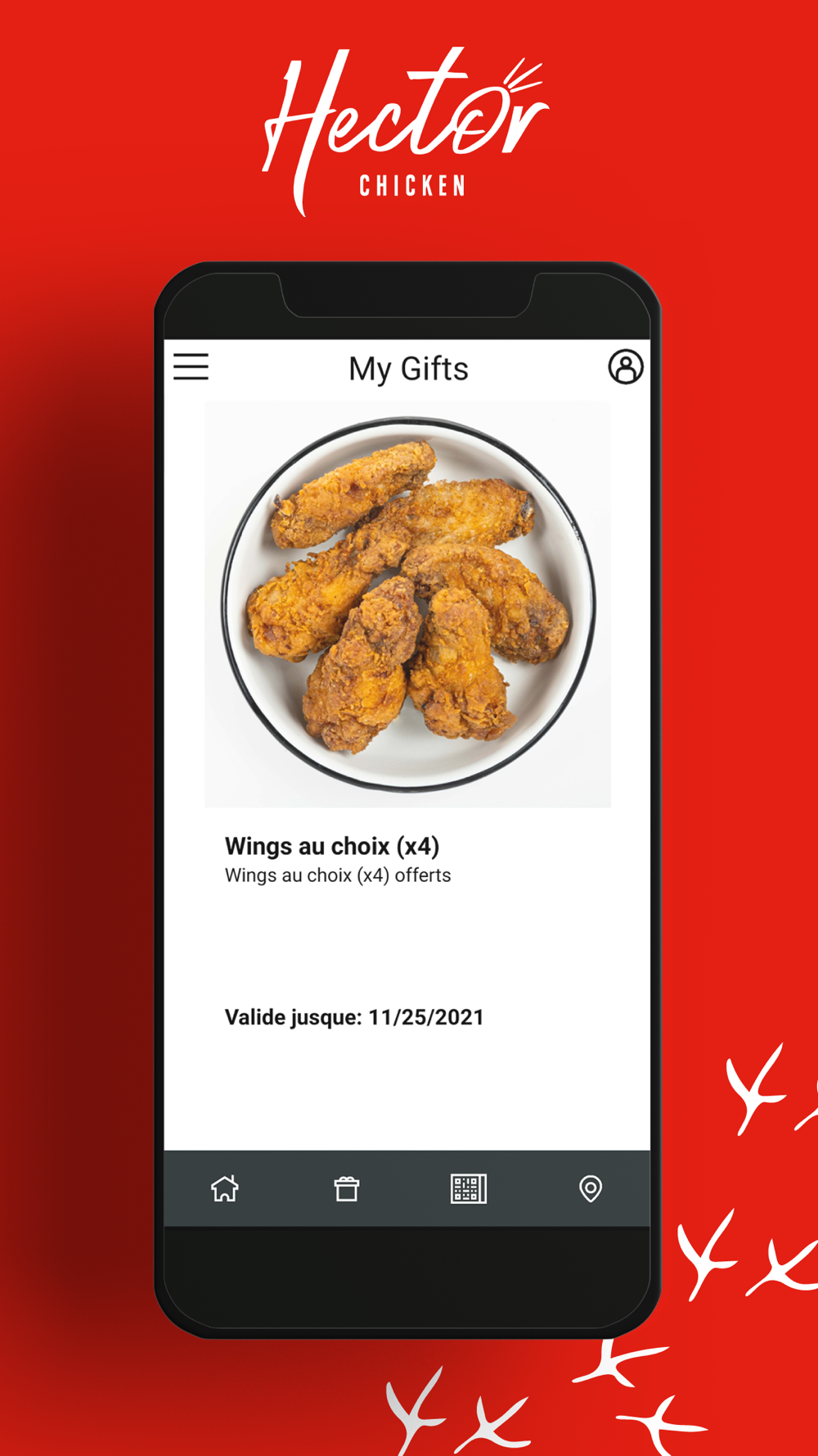 Hector Chicken vous mets à l’honneur en vous accueillant avec un cadeau de bienvenue dès l’installation de notre application mobile. Votre fidélité nous permet de grandir de jour en jour et de toujours mieux vous servir. Nous voulons dès lors vous mettre en avant grâce à des récompenses à chacune de vos venues et pour des occasions spéciales… Car il n’existe que des moments opportuns pour partager un bon repas entre amis ou en famille.
