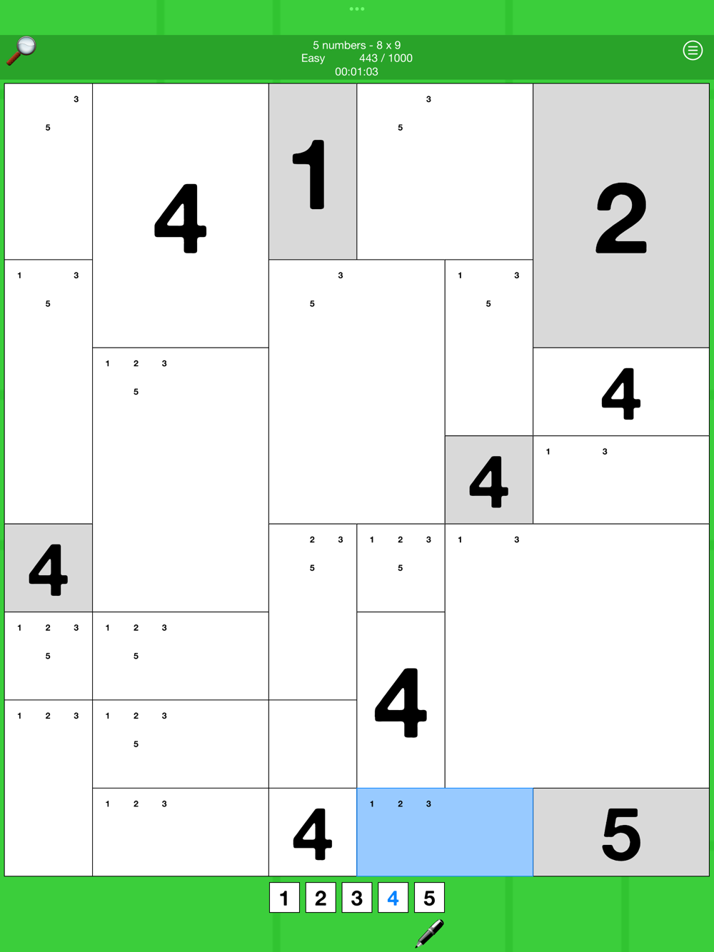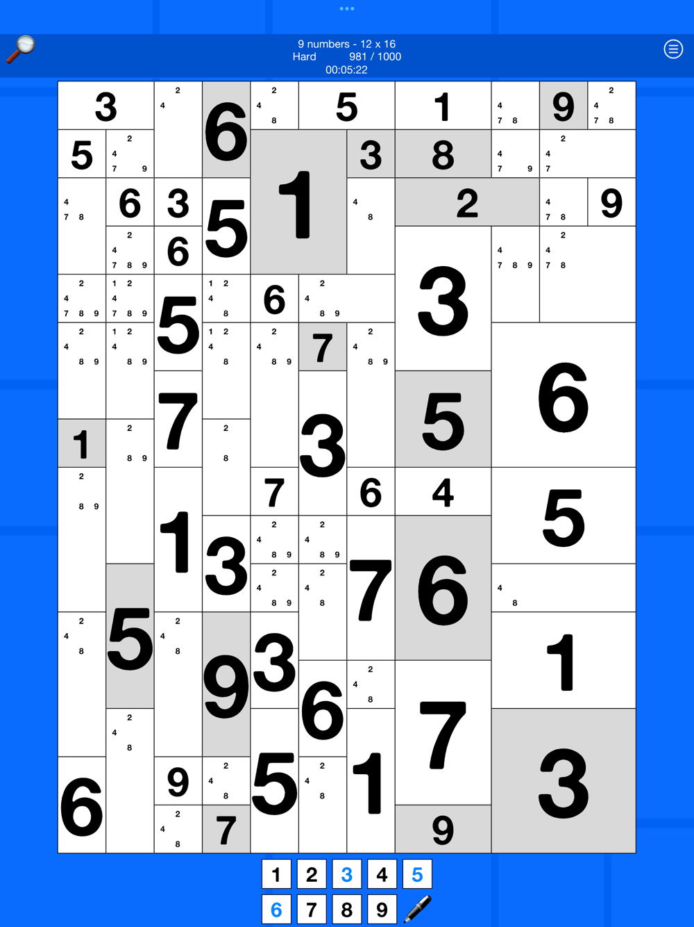 Grids can be zoomed in and out using a spread and pinch motion to easily complete large grids even on smaller devices.