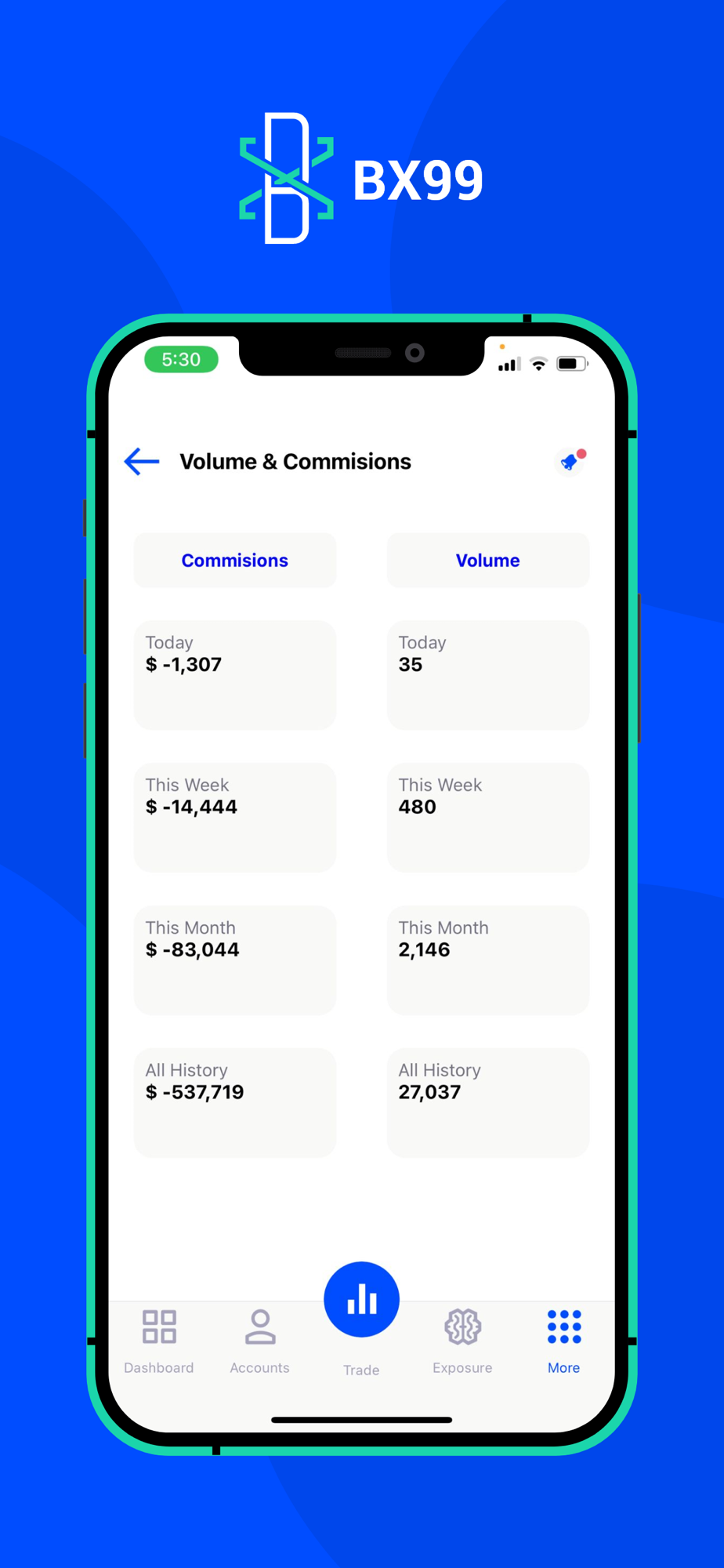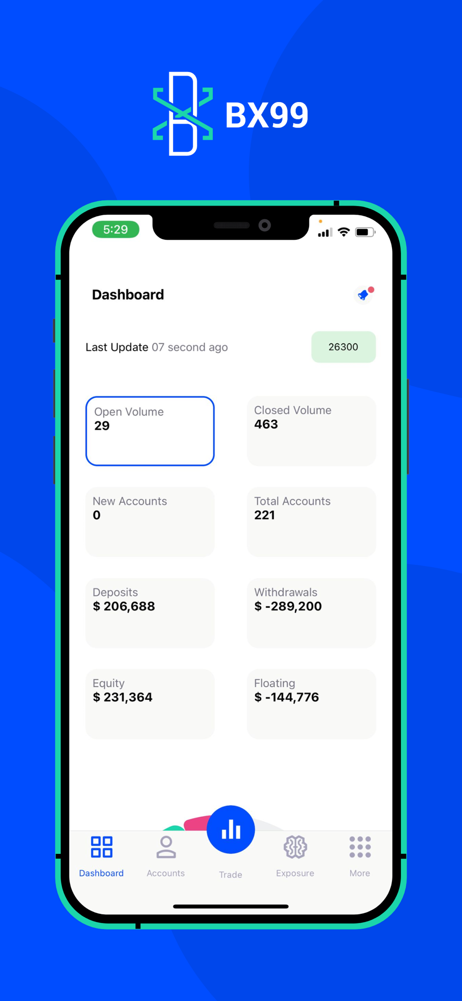 BX99 allows you to monitor your trading book with full reporting & metrics features. This app enables you to leave your desktop trading terminal and use it instead. The built-in reporting system that shows daily analysis and exposure allows you to be always up-to-day.