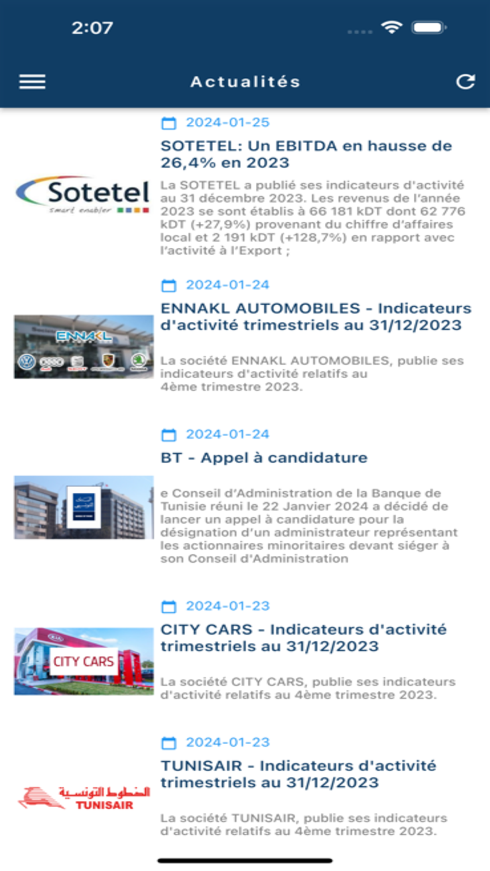- La visualisation des indices et des cotations du marché de la bourse de Tunis.