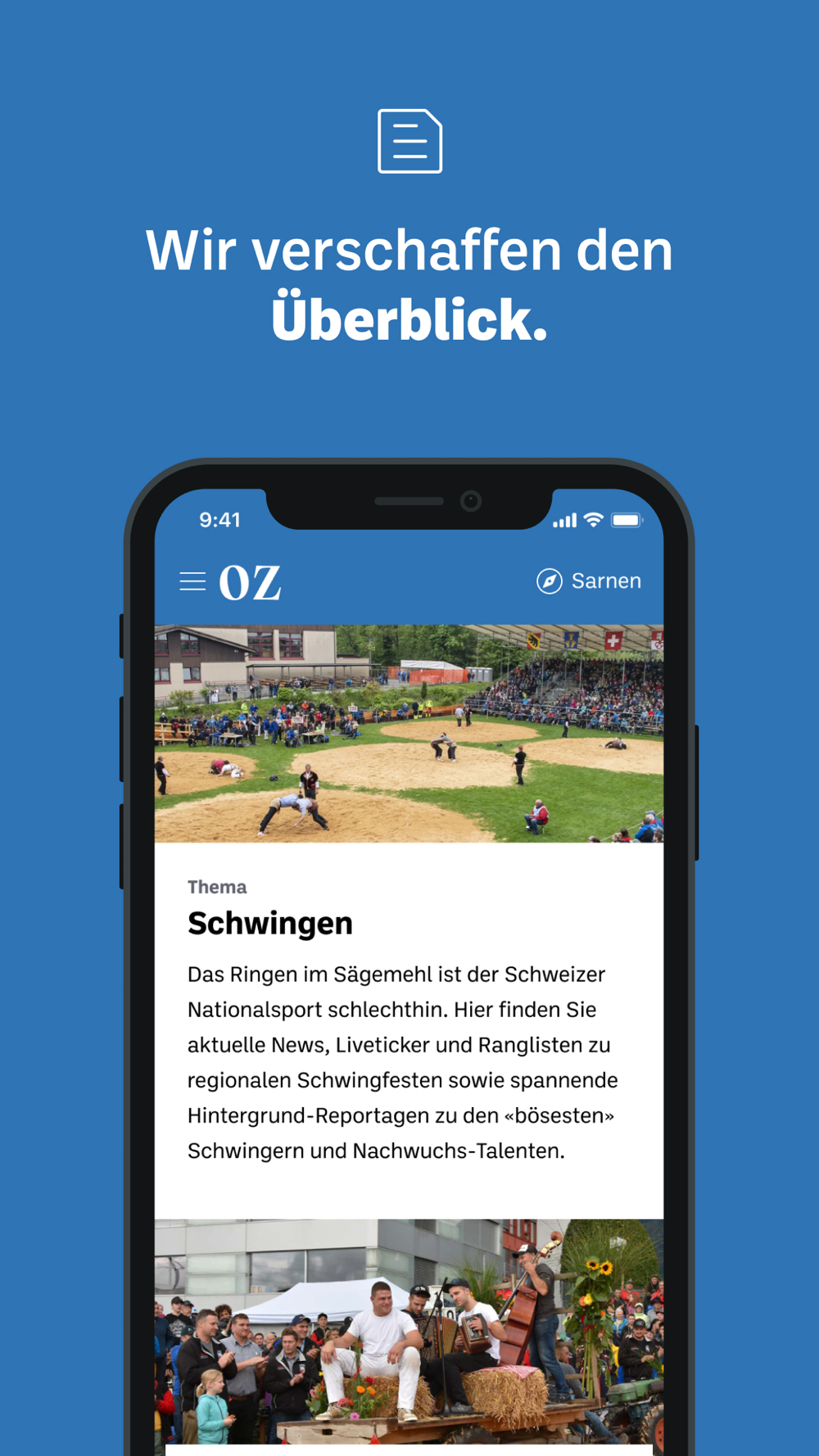 Mit der «Obwaldner Zeitung» News App bleiben Sie auch unterwegs auf dem Laufenden über Aktuelles aus Obwalden und Ihrer Gemeinde. Neben unseren regionalen Inhalten liefern wir Ihnen täglich die wichtigsten News auf nationaler und internationaler Ebene.