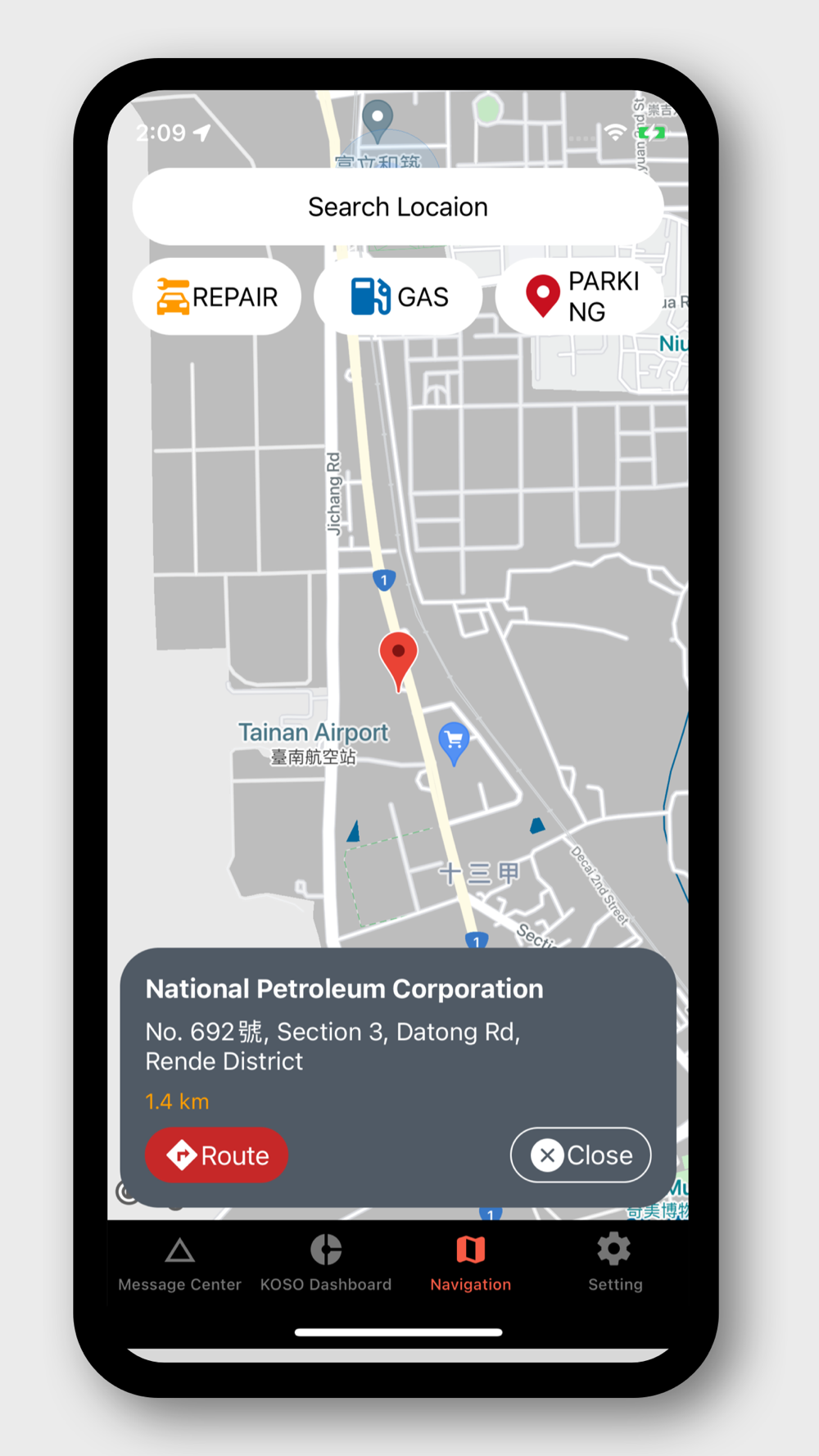 K LINK provides related information beforehand such as the weather forecast info and the instant gas price for a reference to help drivers ready for the trip.