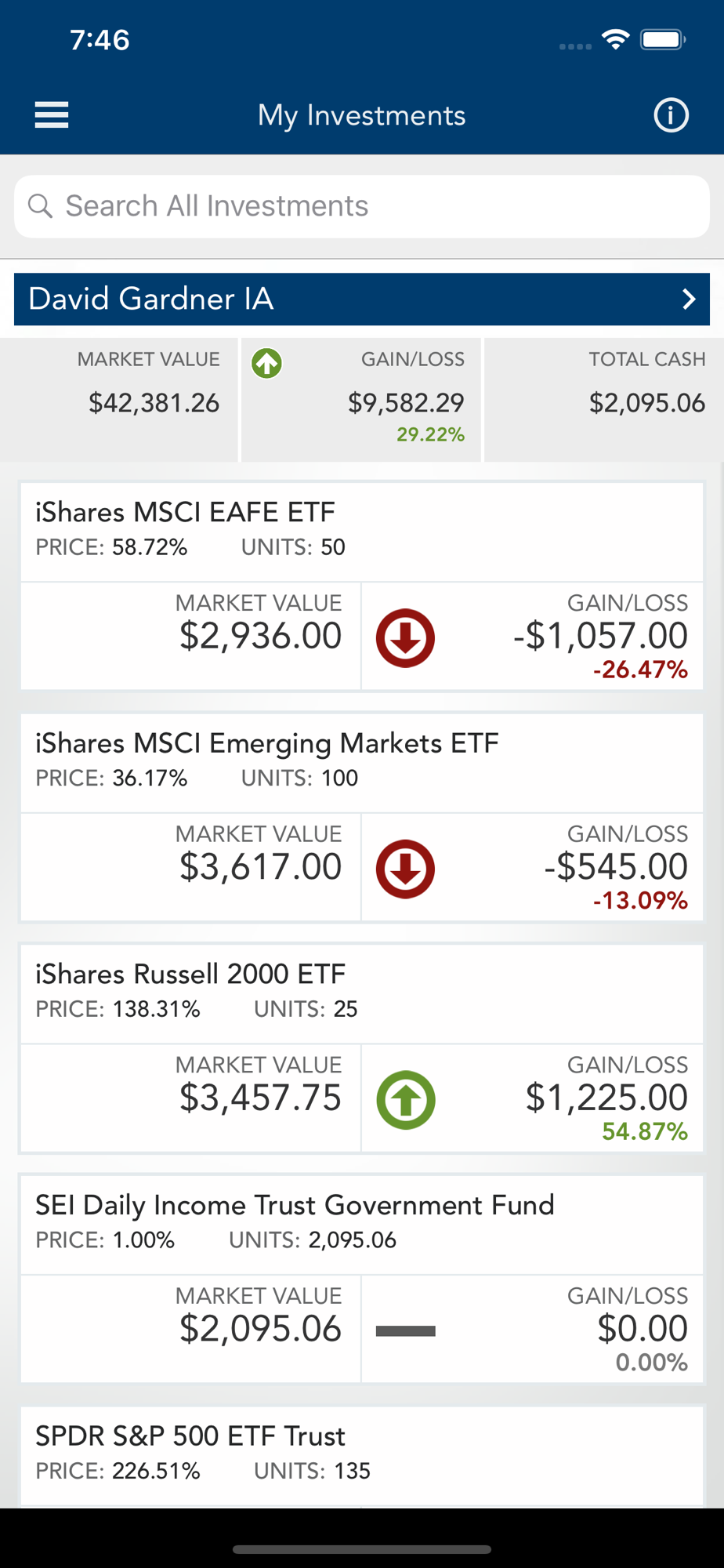 - A dashboard summarizing your investment account(s), market value, and how your money is invested