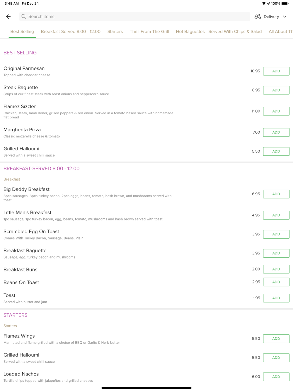 Order food online from Flamez Lounge! It's so easy to use, fast and convenient. Try our new, online app which contains our entire takeaway menu.You can now order online, all your favourite dishes and many more delicious options, and have them delivered straight to your door in no time at all.Thank you for visiting Flamez Lounge in Thornaby. We hope you enjoy our online ordering app and your food.