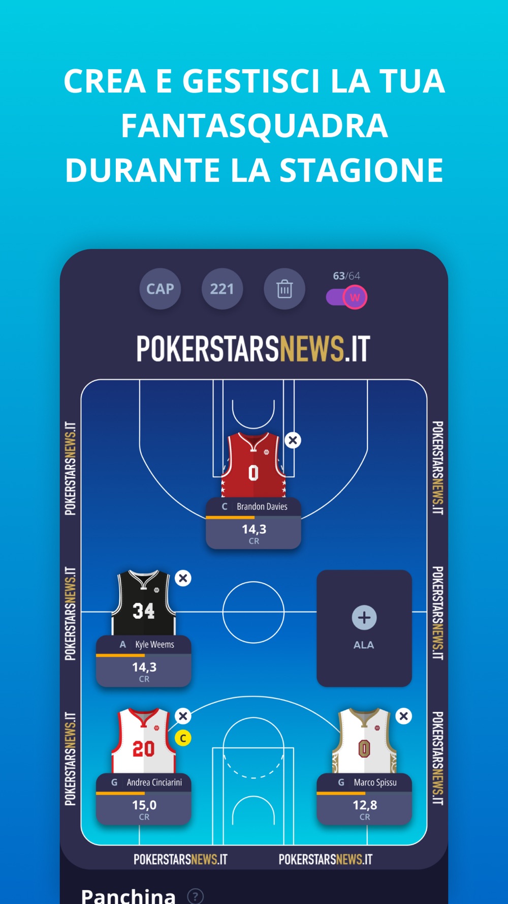 1) Squadra: hai 95 crediti per selezionare il tuo roster composto da: 2 centri, 4 guardie, 4 ali e 1 allenatore.
