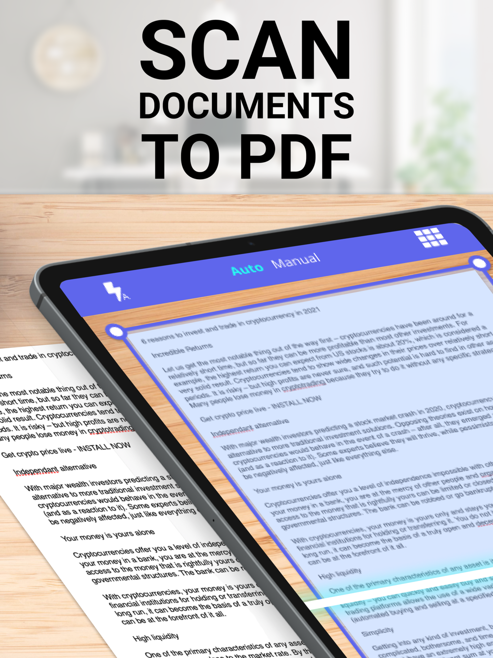 - With this PDF scanner app, scan anything you need, receipts, contracts, books, paper notes and store your scans as multipage PDF or JPG files.