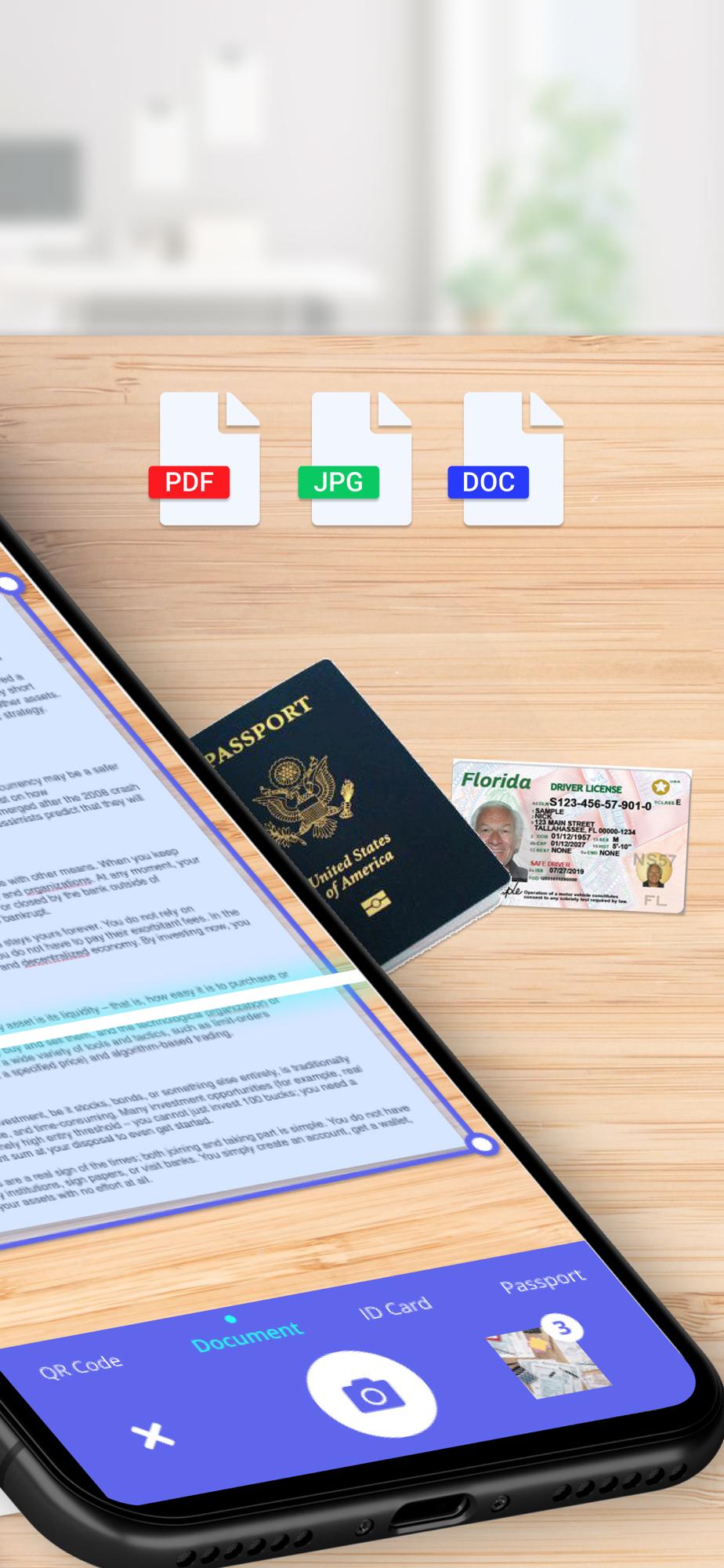 Proscan is a professional scanner app to instantly scan, save, and share any document in PDF, JPG, TXT and more formats.