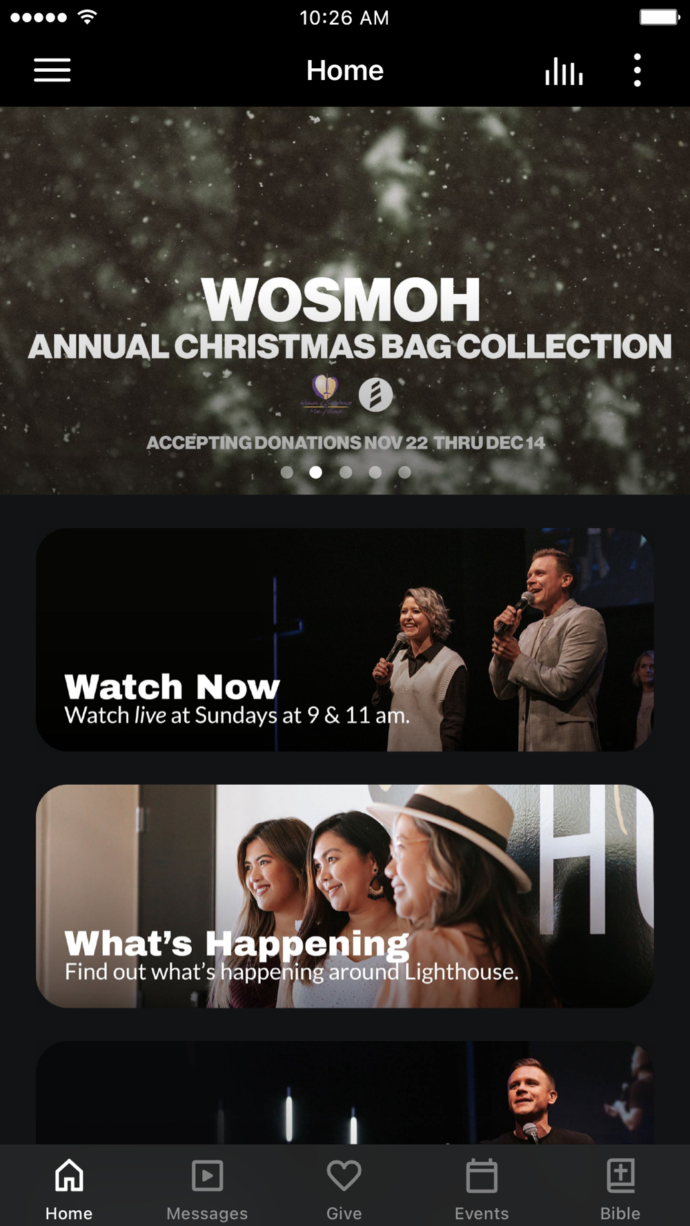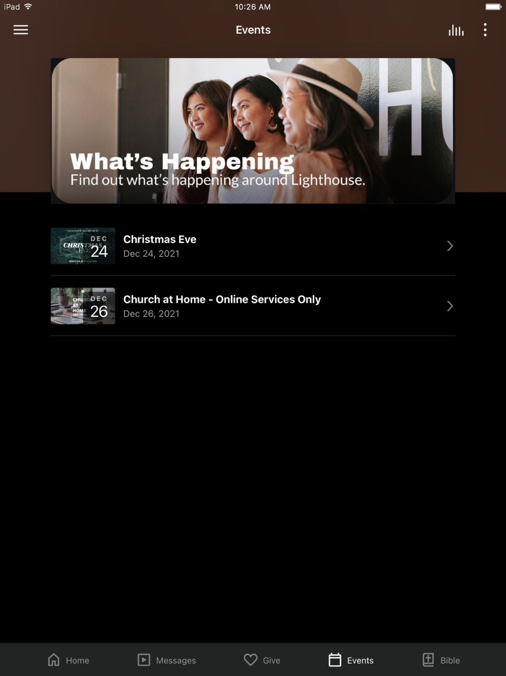 Stay connected with the day-to-day life of Lighthouse Church! With this app you can: watch or listen to previous messages, stay up to date with push notifications, watch our live services at 9a +11a, and find out what events are happening at Lighthouse.