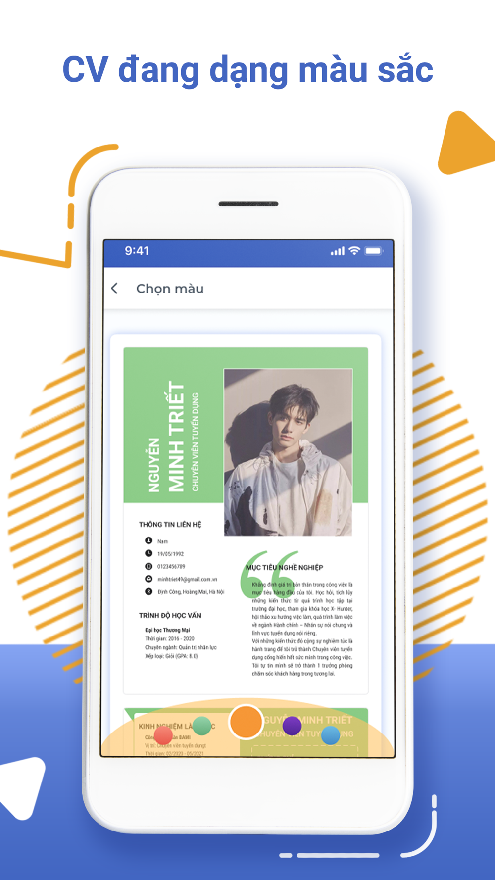 Ứng dụng CV Vieclam123 mang đến bạn trải nghiệm tạo mẫu cv xin việc đẹp dễ dàng chưa từng thấy. Chỉ cần sở hữu một chiếc điện thoại thông minh kết nối Internet cần tải về sau đó vào đăng ký tài khoản ngay trên điện thoại di động, chưa đầy một phút bạn có thể lựa chọn những mẫu CV chuyên nghiệp ưng ý để xem trước và tạo CV theo những nội dung gợi ý đã có sẵn và download CV xin việc về máy. Không phải tự tay đánh máy CV online đơn giản hay lựa chọn những mẫu CV giới hạn trên Word, giờ đây bạn có thể tạo cho mình một bản CV online free ngay trên chính “dế yêu” mà không phải lo lắng về những phiên bản CV đẹp giới hạn và suy nghĩ về phương cách trình bày nội dung sao cho hợp lòng nhà tuyển dụng hay phải tự bỏ ra số tiền để sở hữu những bản CV như ý. Tất cả những thao tác của bạn sau khi sở hữu tài khoản app CV Vieclam123 chính là lựa chọn mẫu CV thật đẹp, vào tạo CV, thêm, sửa xóa và tải mẫu cv xin việc các trường theo nội dung gợi ý.