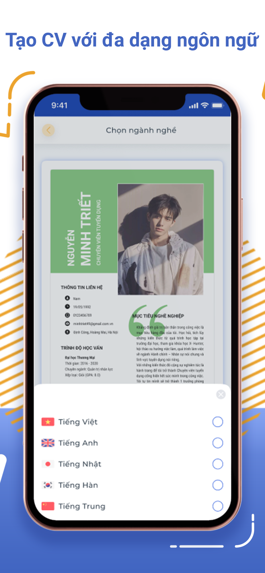 Không dừng lại ở hình thức, ứng dụng CV Vieclam123 chính là cầu nối giúp bạn chạm đến những công việc mơ ước tại những công ty ngoài nước với bộ CV online với các ngôn ngữ thông dụng khác nhau gồm: tiếng Anh, tiếng Trung, Tiếng Hàn, tiếng Nhật, tiếng được thiết kế cho tất cả những ngành nghề hot nhất. Dù đang mong muốn ứng tuyển vào vị trí kỹ sư, nhân viên văn phòng...nội dung CV được định hướng linh hoạt theo từng vị trí ngành nghề trên các CV xin việc mẫu, từ đây sẽ giúp ứng viên dễ dàng chinh phục trái tim nhà tuyển dụng.
