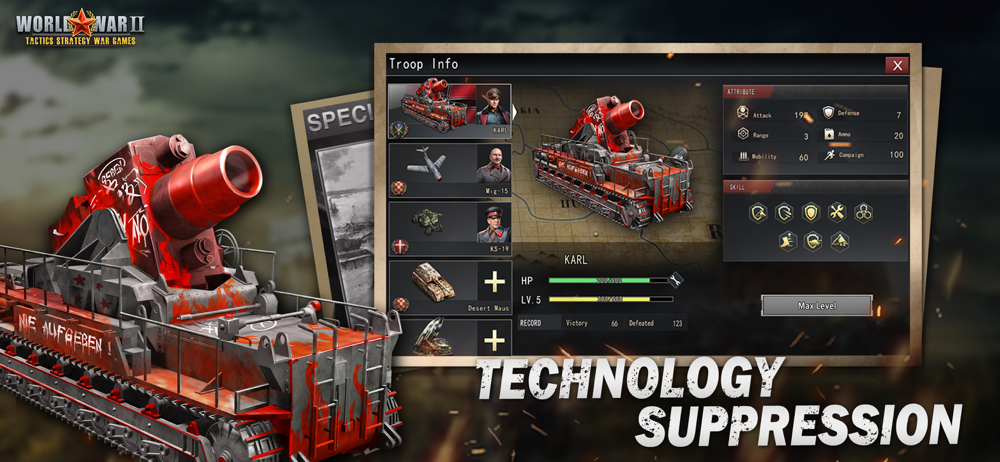 Rundstedt, Guderian, Bock, Zhukov, Konev, etc. Hundreds of outstanding and famous generals are at your disposal. How to control the rhythm of the battlefield or command all talented generals? It's your Strategic Art to let each famous general show his strengths and let everyone surrender to you!