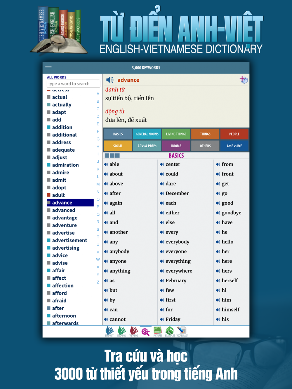 - Tra cứu và học 3000 từ thiết yếu (Keywords).