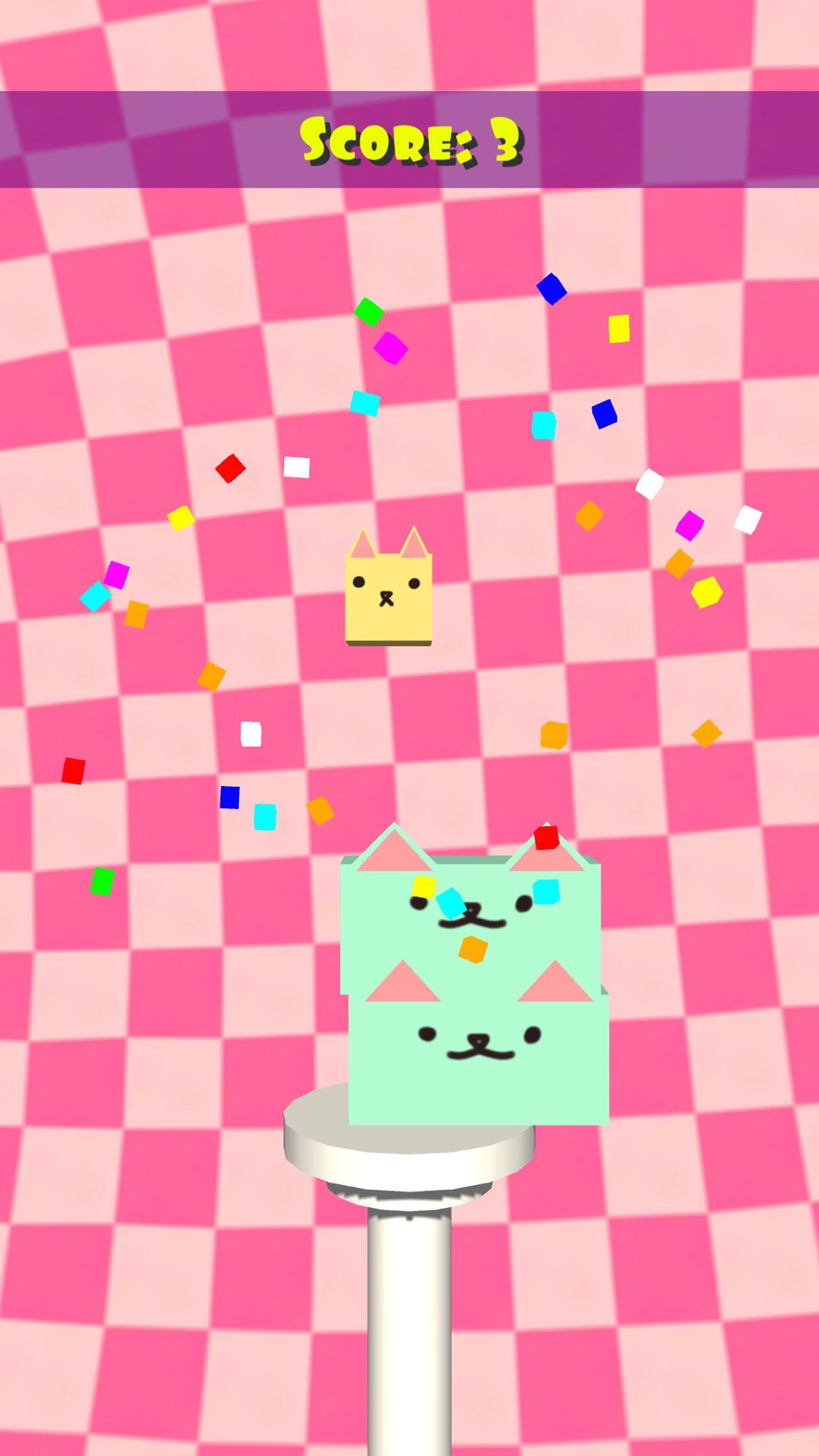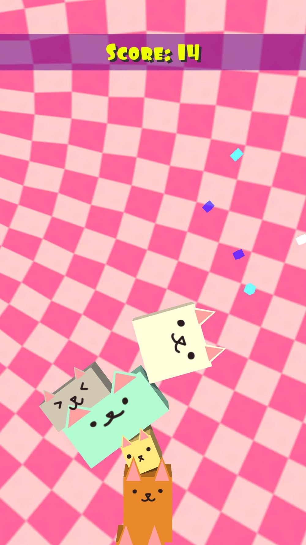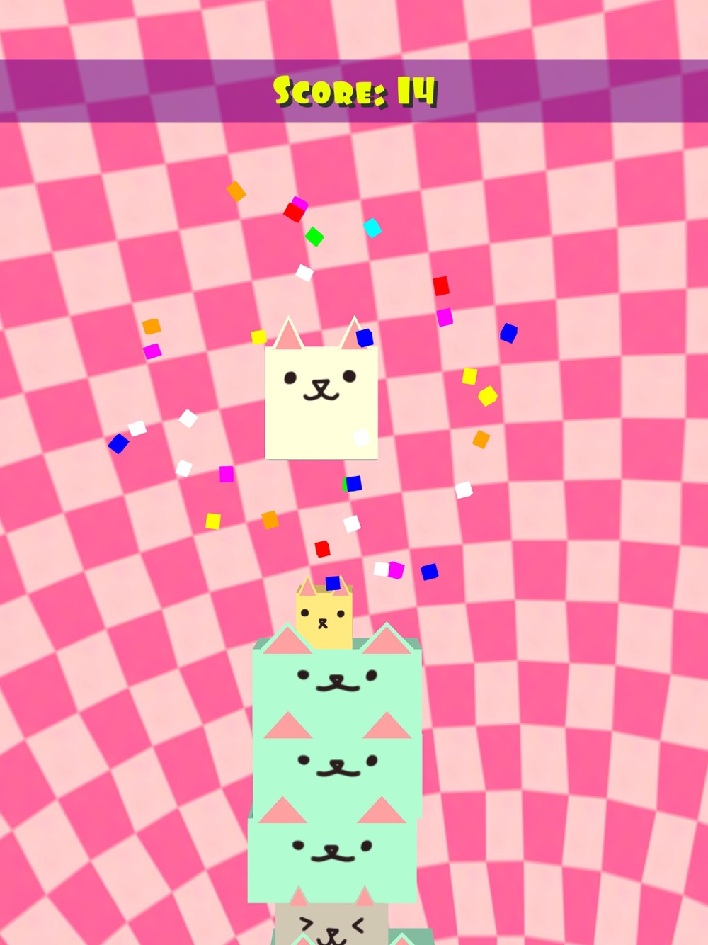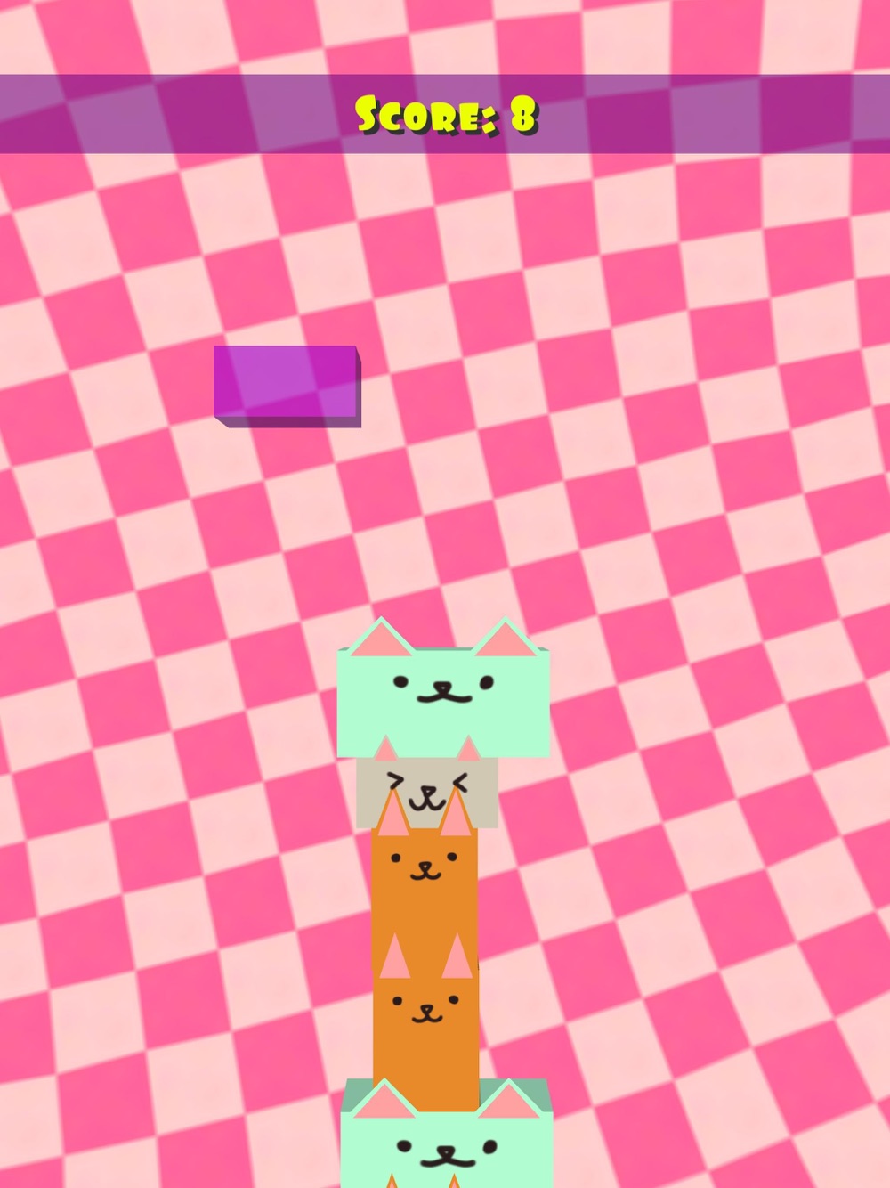 Cat Stacker is a fun casual arcade game about stacking boxy cats! Tap to drop a cat and try to keep your tower balanced as long as possible! If the cats fall, you lose! How many cats can you stack?