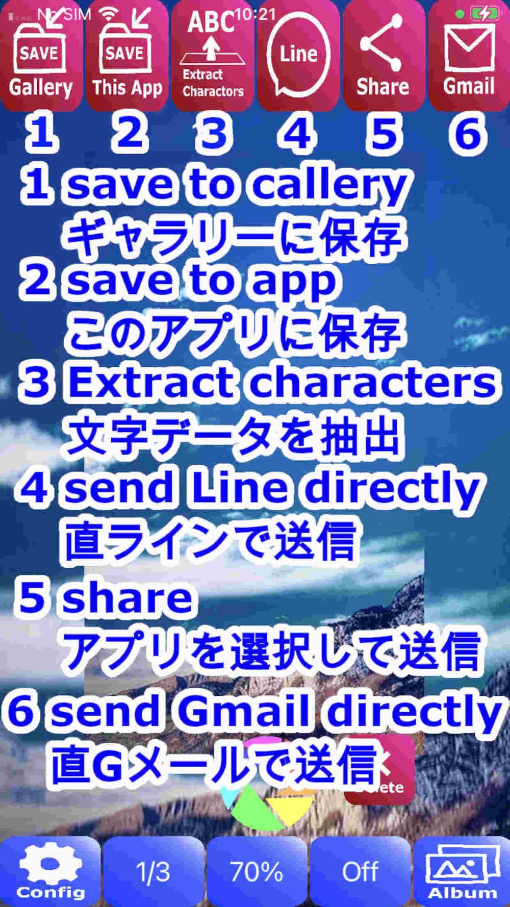 ・ You can bring it to the app from the photo gallery and save it, or you can extract characters and send an email.