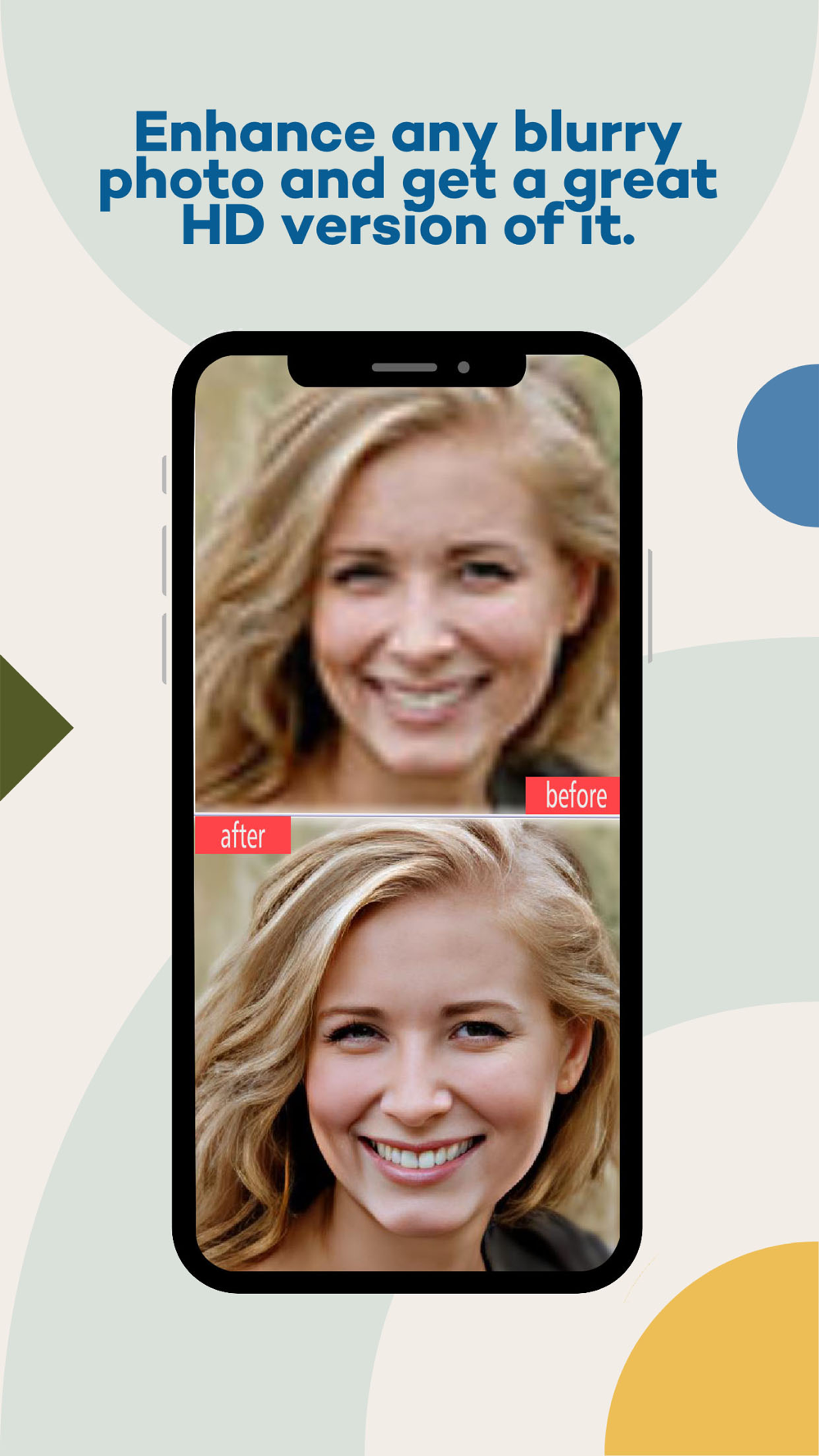 - photo enhancer: enhance any blurry photo and get a great HD version of it.